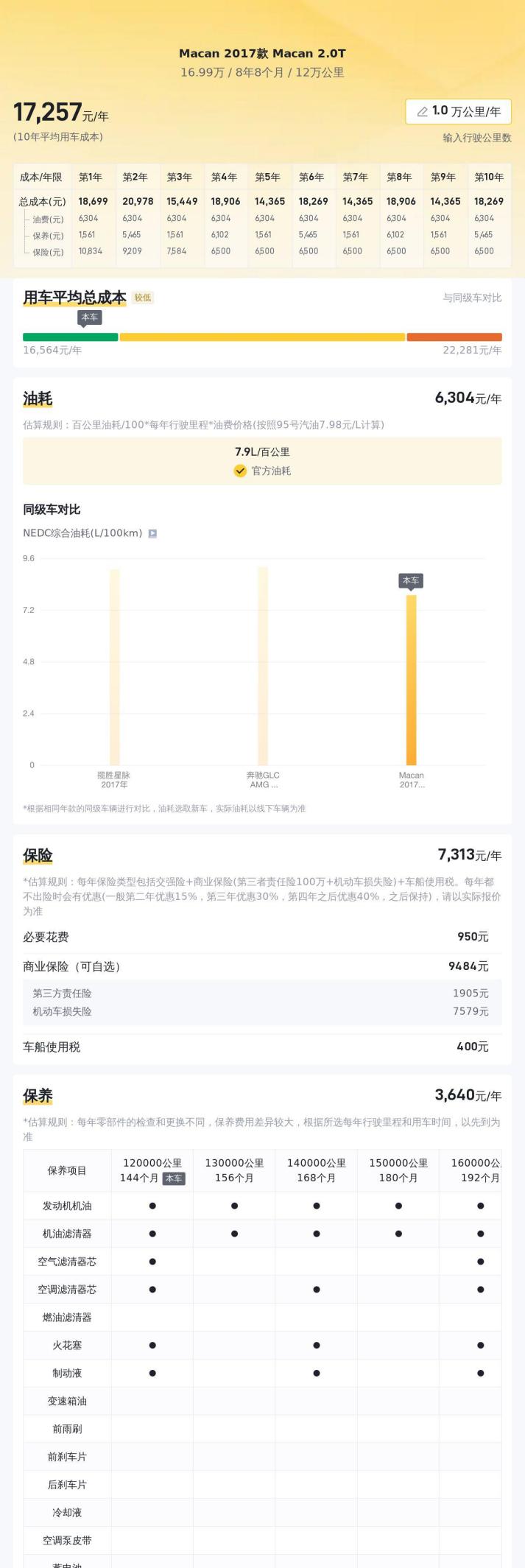 根据一些汽车网站的数据,一辆行驶12万公里的Macan,每年的保养费用大概在1.5万到2万元之间,这还不包括潜在的维修费用。因此,在购买之前,一定要做好心理准备,并预留一部分资金用于后期的维护保养。