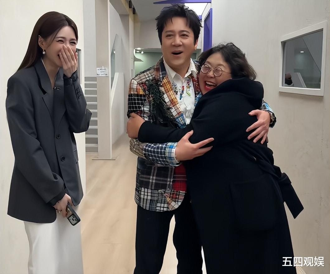 除了殷秀梅、那英,沈梦辰与婆婆还遇到了曾风靡中老年妇女的歌手蔡国庆,依然是激动得上前拥抱合影。