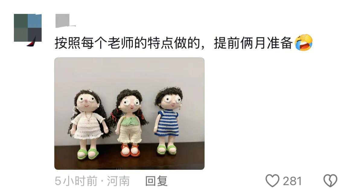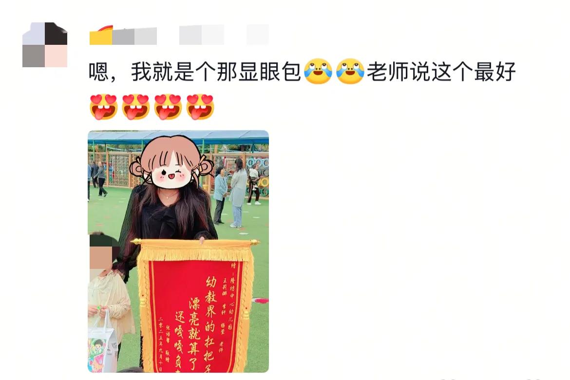 这两位家长也是绞尽脑汁了,一个送锦旗,一个送自己手工制作的娃娃,别说这俩很有创意。