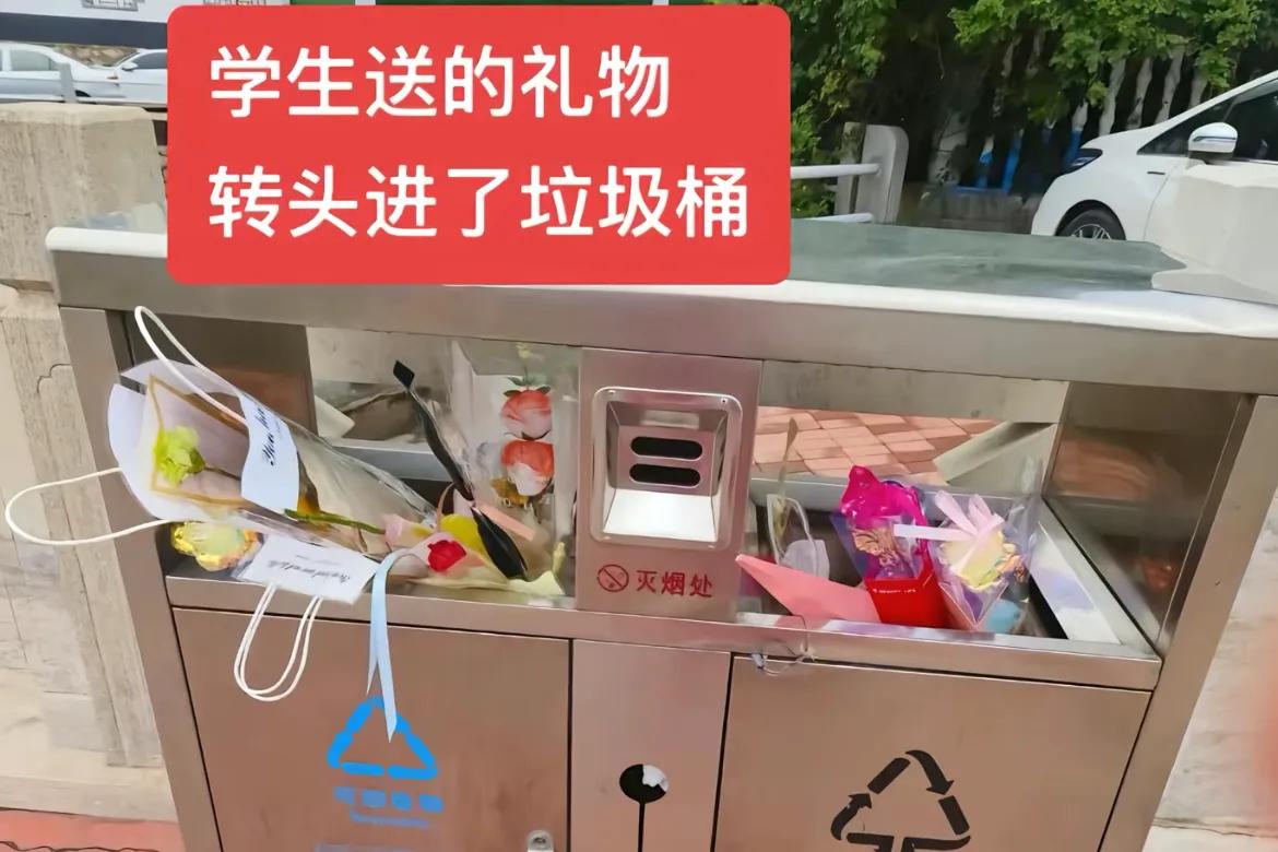 也有一部分老师,收到的花之类的,转身扔进垃圾桶里面去了,说实话看到很难过的。