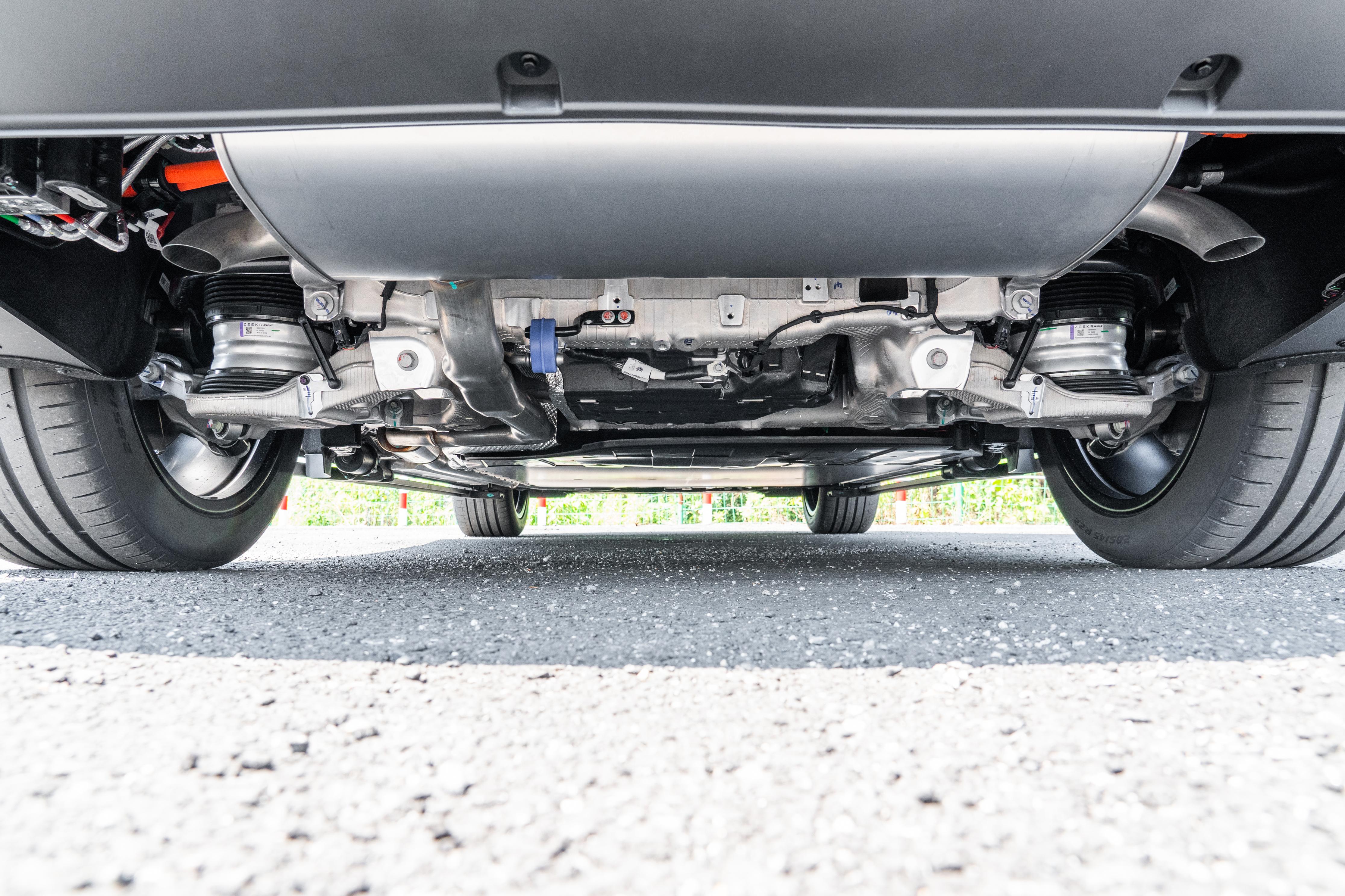 聊到极氪9X,咱得先看看它的底子。它这套浩瀚S架构,是从纯电平台上演变过来的,骨子里就是一套全栈900伏的高压混动系统,这个起点就跟很多传统混动不一样。再看它的底盘硬件,双腔空气悬挂配合CCD电磁减振,这套组合拳打出来,质感就有了。关键是那个80毫米的悬架调节行程,范围挺宽的,这意味着它既能把车身抬高去应付一些烂路,也能在高速上降下来趴得更稳,对路面的适应能力很强,开起来心里更有底。