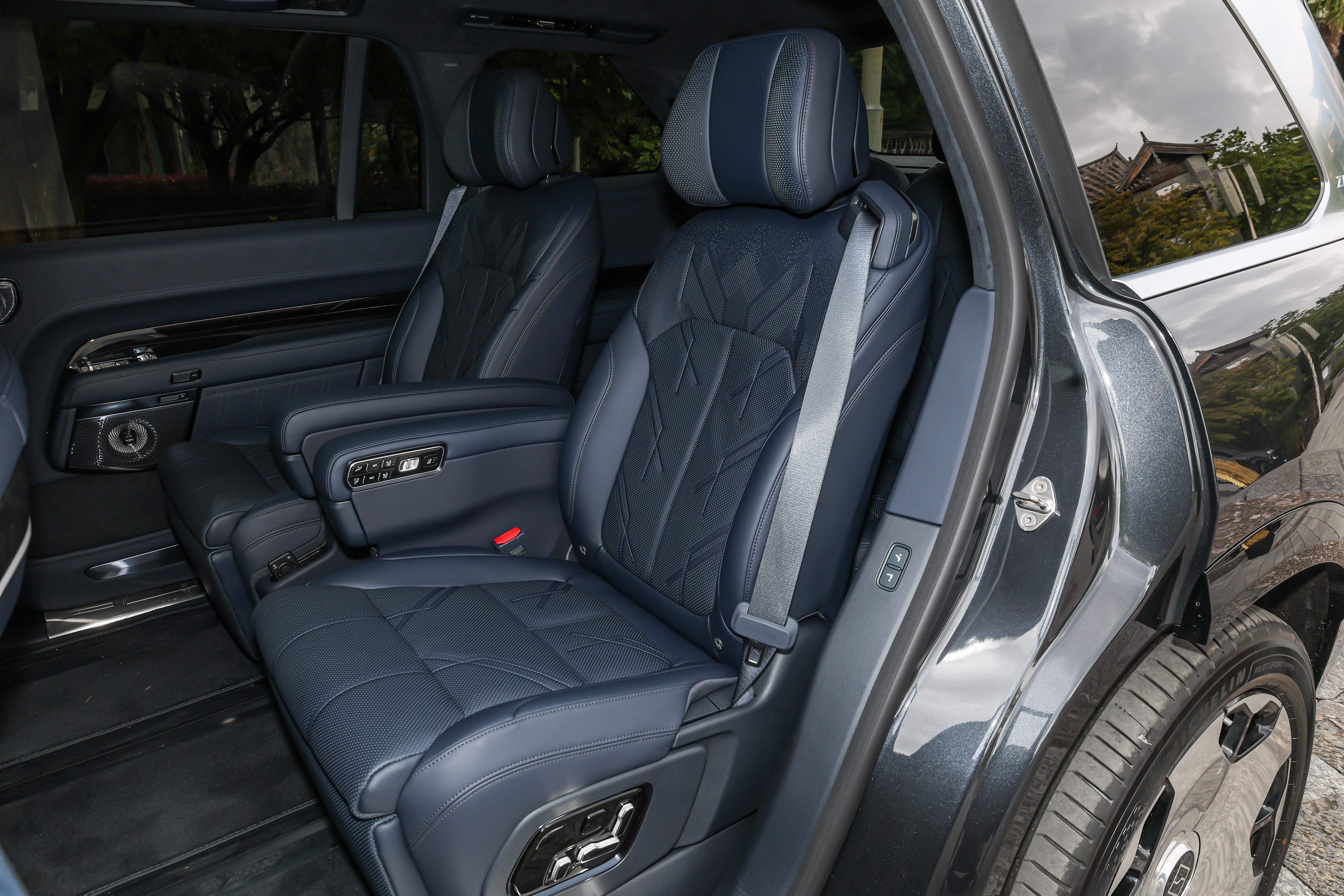 再聊聊座椅本身。它的六个座位无一例外,全都覆盖了Soft NAPPA真皮,这种材质的好处是触感温润,透气性也不错,坐久了不容易觉得闷。手工缝线的细节处理得很到位,找不到什么毛糙的线头。二排那两个独立的“行云座椅”坐着是真享受,坐垫宽度超过了53厘米,比不少MPV都阔绰,整个身体都能陷进去,内部有12层填充结构和回弹海绵,支撑感和柔软度平衡得很好,跑长途时在上面小憩一下,感觉跟家里的单人沙发似的。这种舒适度,对于需要长时间坐在车里的乘客来说,绝对是个加分项。