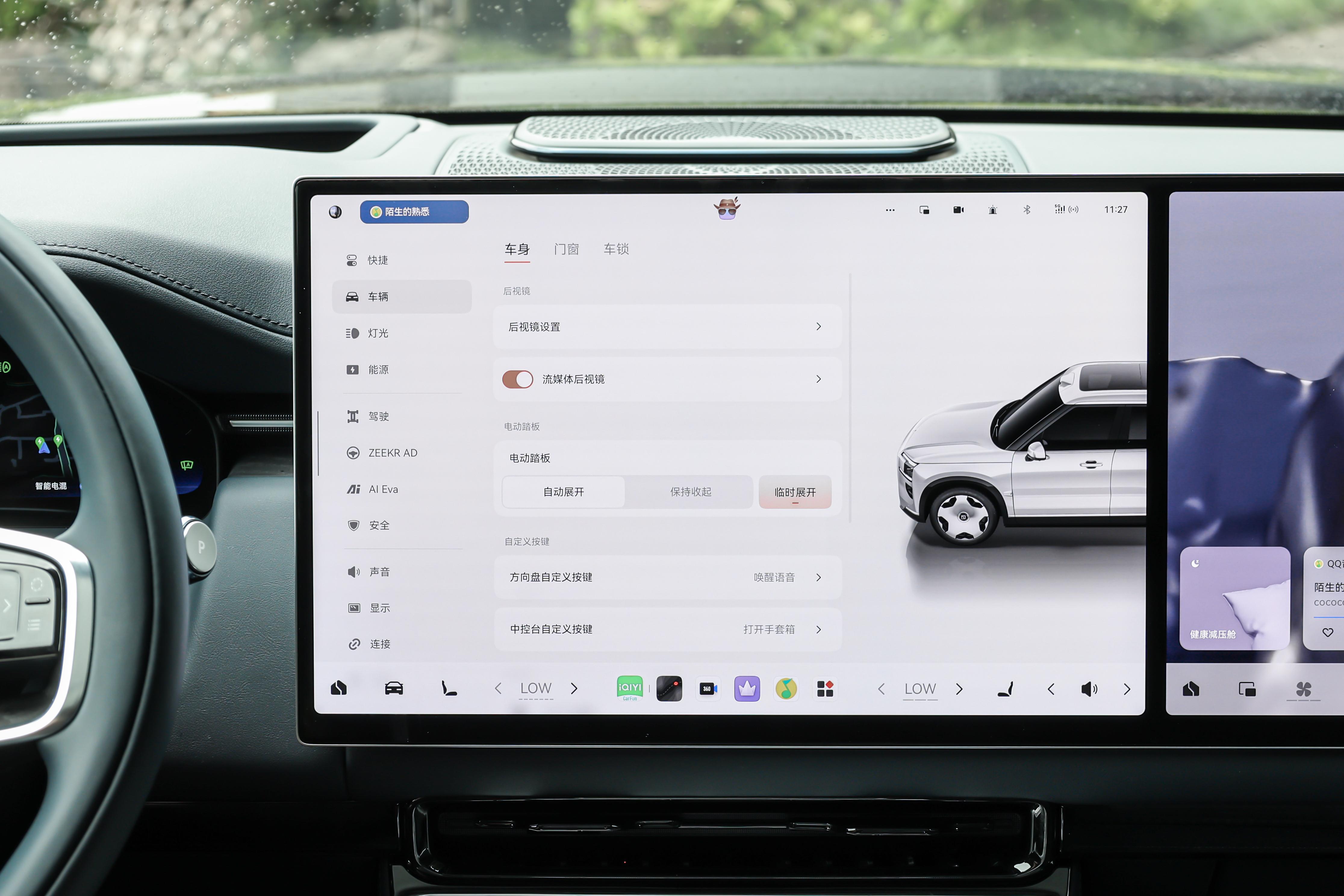 不过,比起常规的领航辅助,我觉得它有两个主动安全功能更有意思,平时可能感觉不到,但关键时刻能派上大用场。一个是G-AES自动紧急转向辅助,设想一下,在高速上开到130公里每小时,前面突然出现状况需要紧急避让,这套系统能支持连续完成两次避让动作,官方说这能将事故风险降低百分之十五。另一个是侧碰主动抬升系统,当雷达判断出侧面有车要撞过来时,它会在0.7秒内把受撞那一侧的空气悬架抬起来,用更结实的门槛梁去硬扛,碰撞侵入量能减少百分之二十七。能看出来,极氪9X在这些不容易被察觉的安全细节上,确实是花了心思的,让人开着心里更踏实一些。