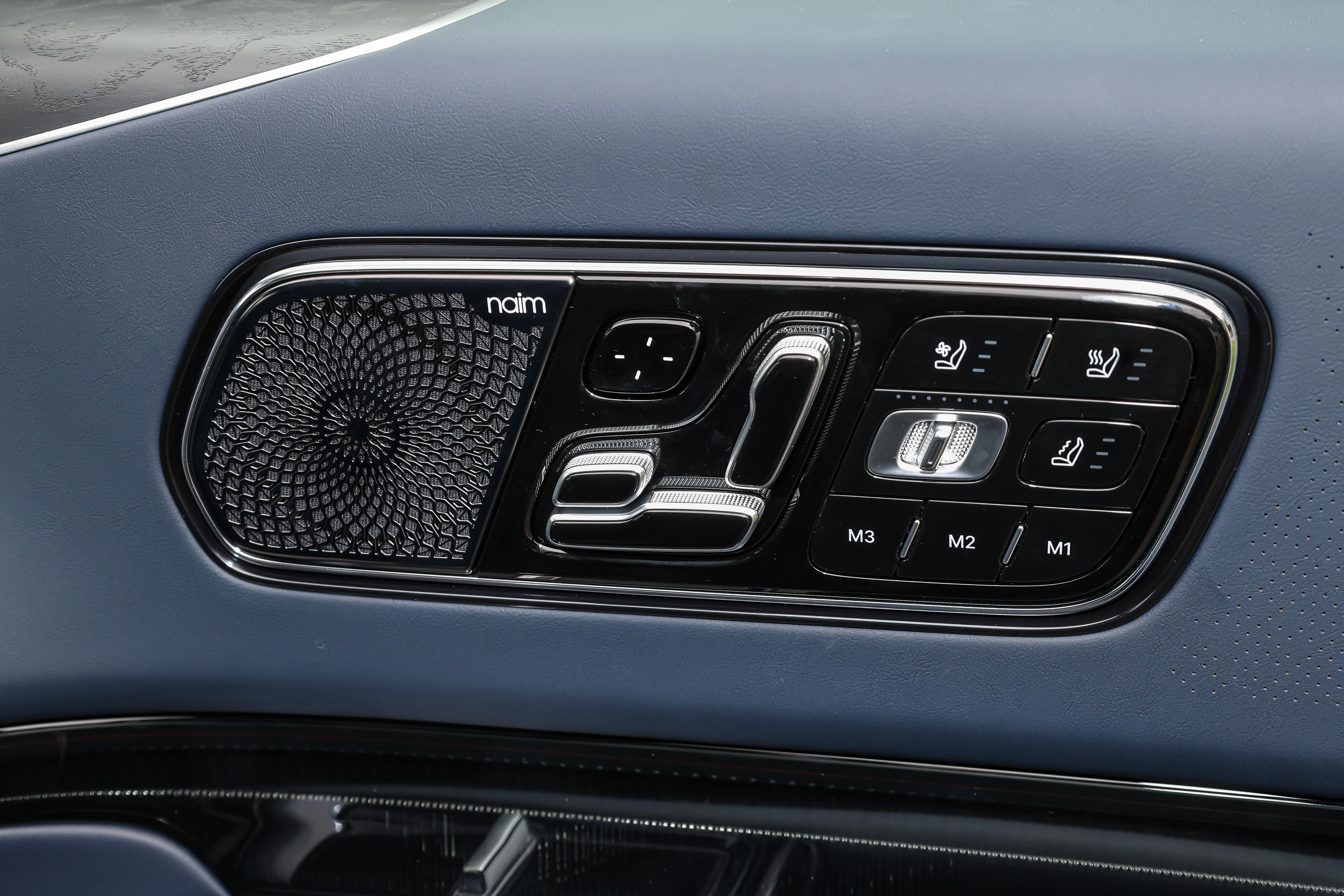 这车内饰的设计思路挺有意思,讲究一个“藏”字。门板上的储物格,关上的时候你根本察觉不到,按一下才弹出来,平时车里看着就利索多了。氛围灯也是藏在饰板的缝隙里,用的是三层柔光蚀刻工艺,1680万色可选,光线很匀很柔和,不是那种汽配城风格的刺眼灯带。最有意思的是它能跟着音乐的节奏闪,这个功能还挺解压的。最让我没想到的是音响,选装的那套英国Naim系统,直接给了32个喇叭和8个座椅振子,40个独立通道,峰值功率干到了3868瓦。要知道这牌子给宾利做的音响单选就要14万,现在极氪给用上了,放个交响乐,那感觉真不是盖的。