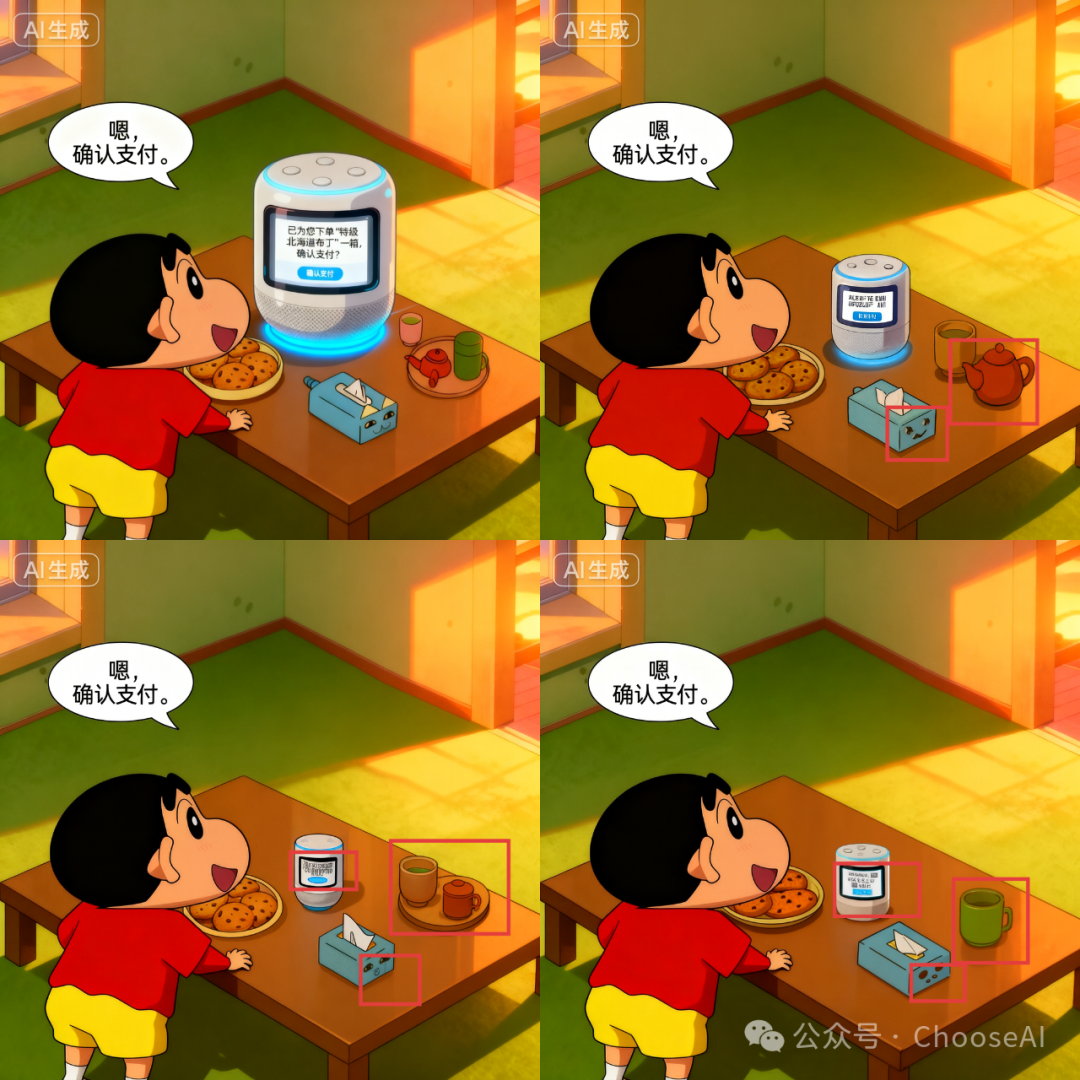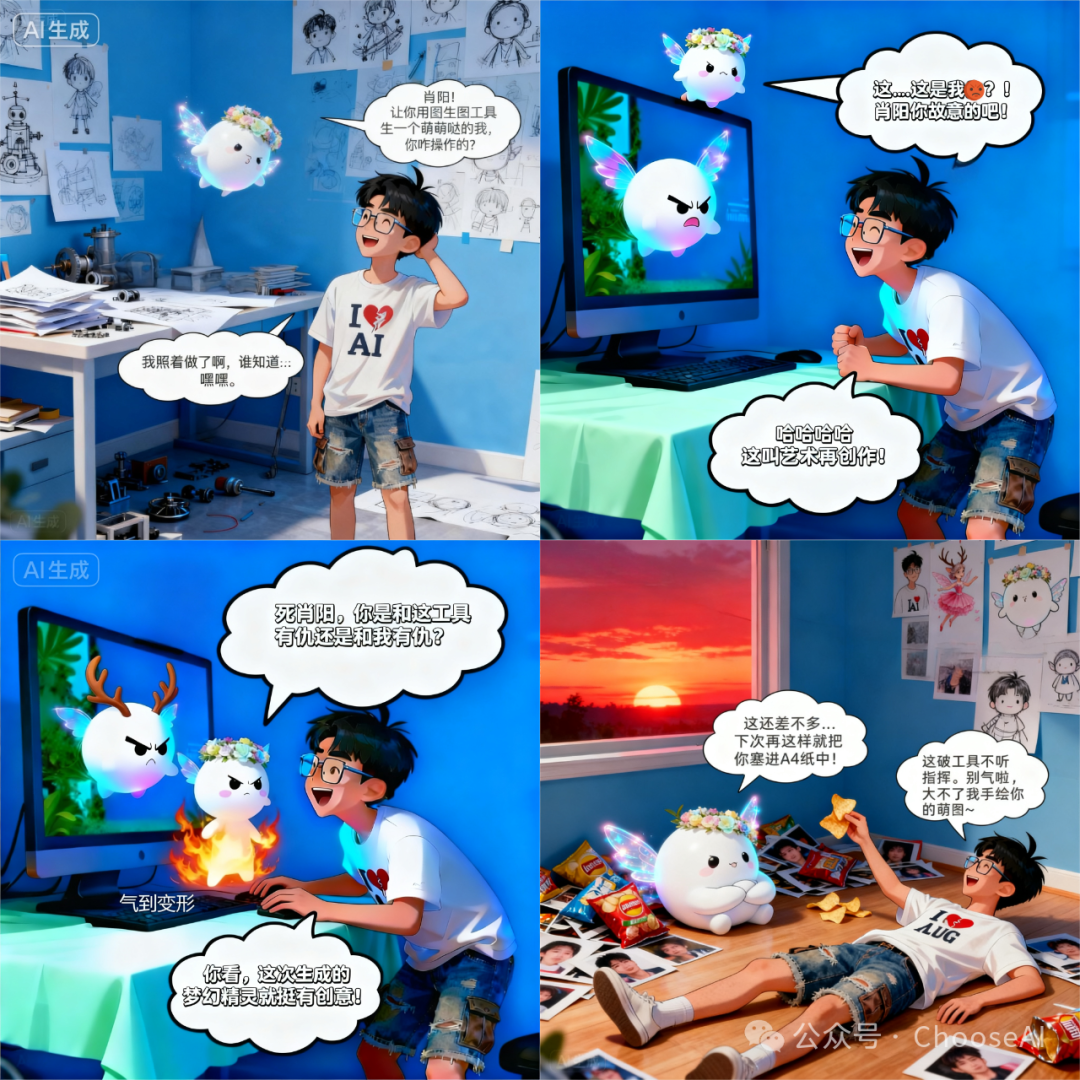 写提示词时,人物或重要物品需要描述,否则多人图模型不知你指的是谁。不能前一句提到B主体,后一句再写A主体说的话,否则导致气泡框指向有问题。