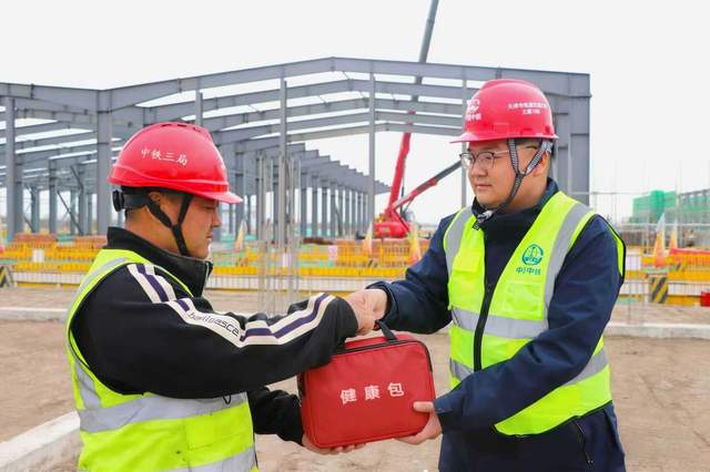 工地上,一份份特制“健康包”被送到一线工友手中,大家亲切称之为“安心包”。包内装有创可贴、碘伏、感冒药、藿香正气水等常用药品,还有一张写着急救联系方式和健康小贴士的温馨提示卡,成为建设者们随身携带的健康“小护士”。
