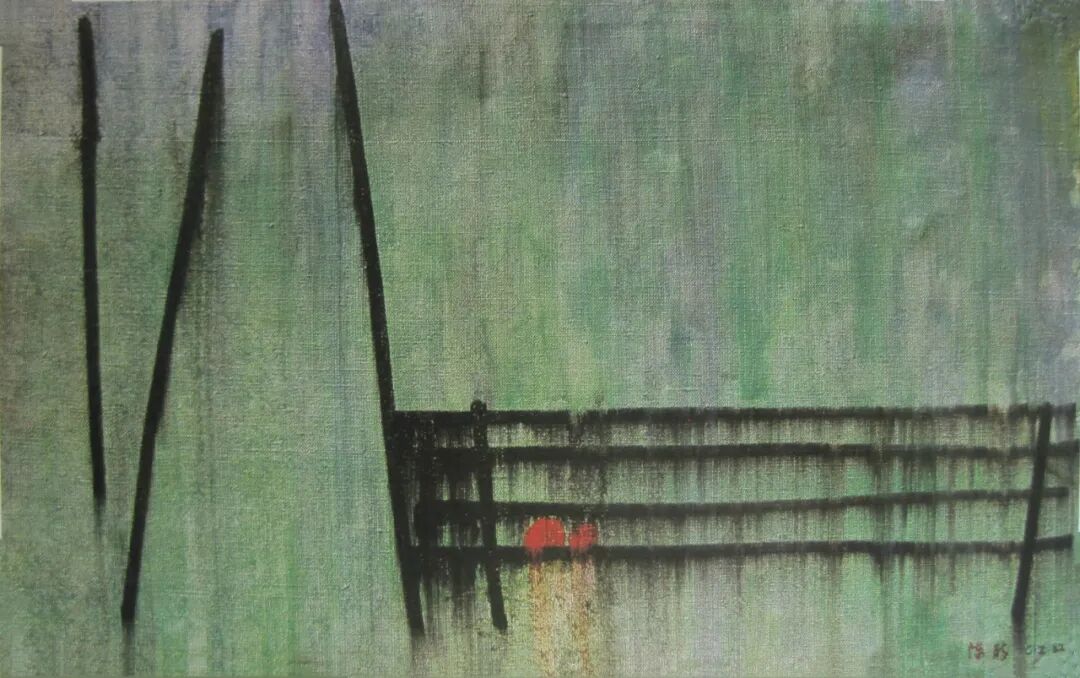 在画展的宣传画册《现代油绘展》内的日本评论家的文章中,也提到了《空间我们的》。1987年,《画家》杂志还发表了高华的文章《进入现代的实验——陈醉的系列油画<遥远的遐思>》进入现代的实验 1987 2`800——陈醉的系列油画《遥远的遐思》高华近年来,陈醉创作的系列油画《遥远的遐思》,可以称之为进入现代的实验。《遥远的遐思》系列油画之一《空间,我们的》(以下简称《空间》),创作于1982年,刊登于《画家》1985年第1期。1986年3月参加了在中国美术馆举办的“当代油画展”并赴日本巡回展出。《空间》的淡绿色调,象初恋一样清新、纯净而朦胧。在那迷蒙的绿意中,跳动着、颤抖着两点殷红:是两枚荔枝?两团火焰?还是两颗心灵?在这里,画家是要表现那种初恋的朦胧印象、莫名惆怅和诗意感受。换言之,他是在追求一种“内在的表现”(intrinsical expression)——内在情感的审美表现。《空间》是最引人注目的表现手法是线条的抽象。克利宣称:“线即是能(energy)”。线条,在现代西方表现主义、抽象主义绘画中,已从表示物象界限的狭隘功能中挣脱、抽离出来。线条本身便成为表现内在精神需要的自律性因素。不过,《空间》的抽象线条,并不是蒙德里安那种纯粹几何抽象构成的机械式线条,而是独具东方美学特质的中国式书法线条。陈醉自幼苦练书法,这使他感觉到,蒙德里安冷抽象的线条太单调、太机械、太工艺化,不如中国书法积淀着中华民族传统的精神气韵和审美情趣,也显示着书法家的个性、人格、气质,特别是情感活动的轨迹。他经常思忖:既然现代西方不少画家(诸如米罗、托贝)都把中国书法式的线条引进了油画,我们中国画家为什么不能发挥本民族传统书法艺术的表现优势呢?于是,他在《空间》中挥毫书写了几道纵横穿插的墨黑粗直的线条,给那女性般轻柔纤细的绿意,平添了一种男性的刚健雄劲。而那些线条边缘模糊,水墨淋漓,仿佛被那温馨的绿意浸润、濡湿、融化了,汇成了一曲绿意与墨线交融的咏叹调。这寥寥几笔墨线,便勾出了一幅情韵悠长的“心画”。《遥远的遐思》系列油画之二《熔》,也是作于1982年,是《空间》的姊妹篇。《熔》的创作经历了与《空间》类似的抽象化过程。画家从中要表现对那些白热化的爱情的追思。《熔》最显著的表现手法是色彩的抽象。从视觉心理学的角度来看,色彩最容易愉悦和满足感情,也最容易刺激和表现情绪,因此色彩是绘画中最富于表现力的因素。正如沃伦.E.斯坦克劳斯所说:“绘画中最重要的因素当然是色彩。……只有当一种色彩被用在它最纯粹和最强烈的效果情况下,我们才能说绘画达到了它的饱和状态。”所谓“最纯粹的”色彩效果,就是抽象的色彩效果,亦即色彩的自律性效果,纯粹的色彩即抽象的色彩也即是概念色彩,因此它本身代表的绘画的意义,蕴含着、鸣奏着康定斯基所说的“内在的音响”。陈醉早在大学时期,便异常敏感于色彩的表现力。在他的大量油画和水粉风景写生习作中,色调的响亮是令人过目难忘的第一印象。八十年代,他广泛涉猎并研究了近现代西方色彩大师的绘画。从德拉克罗瓦浪漫的色彩到梵高狂热的色彩,从马蒂斯装饰的色彩到康定斯基交响的色彩……都表明色彩的独立和抽象,是西方绘画从古典转向现代的重要标志之一。要想更直接、更鲜明地表现内在的情感,没有比色彩更适宜、更有力的形式了。如果说《空间》的淡绿色调象初恋一样清新、纯净而朦胧,那么《熔》的橙红色调则象热恋一样炽热、激动而欢快。在创作了带有抽象美的《空间》与《熔》之后,他似乎又复归写实主义的正统。1985年他创作的不属于《遥远的遐思》系列的油画《火祭》,标志着他人体素描写实功力的高峰、前进或增强,同时也意味着他线条色彩抽象探索的低潮、后退或休止。当然,《火祭》的少女也并非只求肖似模特儿的写实,她令人联想起蒙克的《圣女》,寄寓着某种表现主义、象征主义的深意。从某种意义上来说,这种写实的人体美也正是他后来创造抽象的人体美的必要前提。1986年3月,陈醉完成了《遥远的遐思》系列油画之三《遥远的遐思》。如果说《空间》与《熔》仅仅是前奏和序幕,那么《遥远的遐思》才是主旋律和高潮。真正新的东西往往难以用任何言语来描述,在《遥远的遐思》面前我们不禁感到了词汇的贫乏。《遥远的遐思》基本上是一幅抽象的构图。按照申农的信息等于信源概率的无序状态的尺度“熵”(entropy)的观点,信息符号要素之间的组织结构越缺少秩序,信源所发出的讯息的实际信息量即熵的数量越高。抽象的构图是富有创造力的随机符号,以非具象的线条,色彩和形(form)的意外组合方式,打破了具象的单义的确定性,创造了意象的多义的模糊性,这种信源概率分布平均化的凌乱的无序结构,可以包容、显示和传达更丰富的审美信息。一般的观赏者习惯于从抽象的构图中寻找他所熟悉的具象的影子,我们也不妨根据作为信息载体的画面所提供的外显的、有形的“密码”(code),来索解那谜一样的内隐的、无形的意蕴。《遥远的遐思》画面上有几道细长的深蓝色波浪形曲线,勾出了梦幻般重叠、飘渺而透明的空间深度层次,暗示着追思、回忆、梦想的意境。《遥远的遐思》的表现手法,突出发展了形的抽象。抽象的线条、抽象的色彩与抽象的