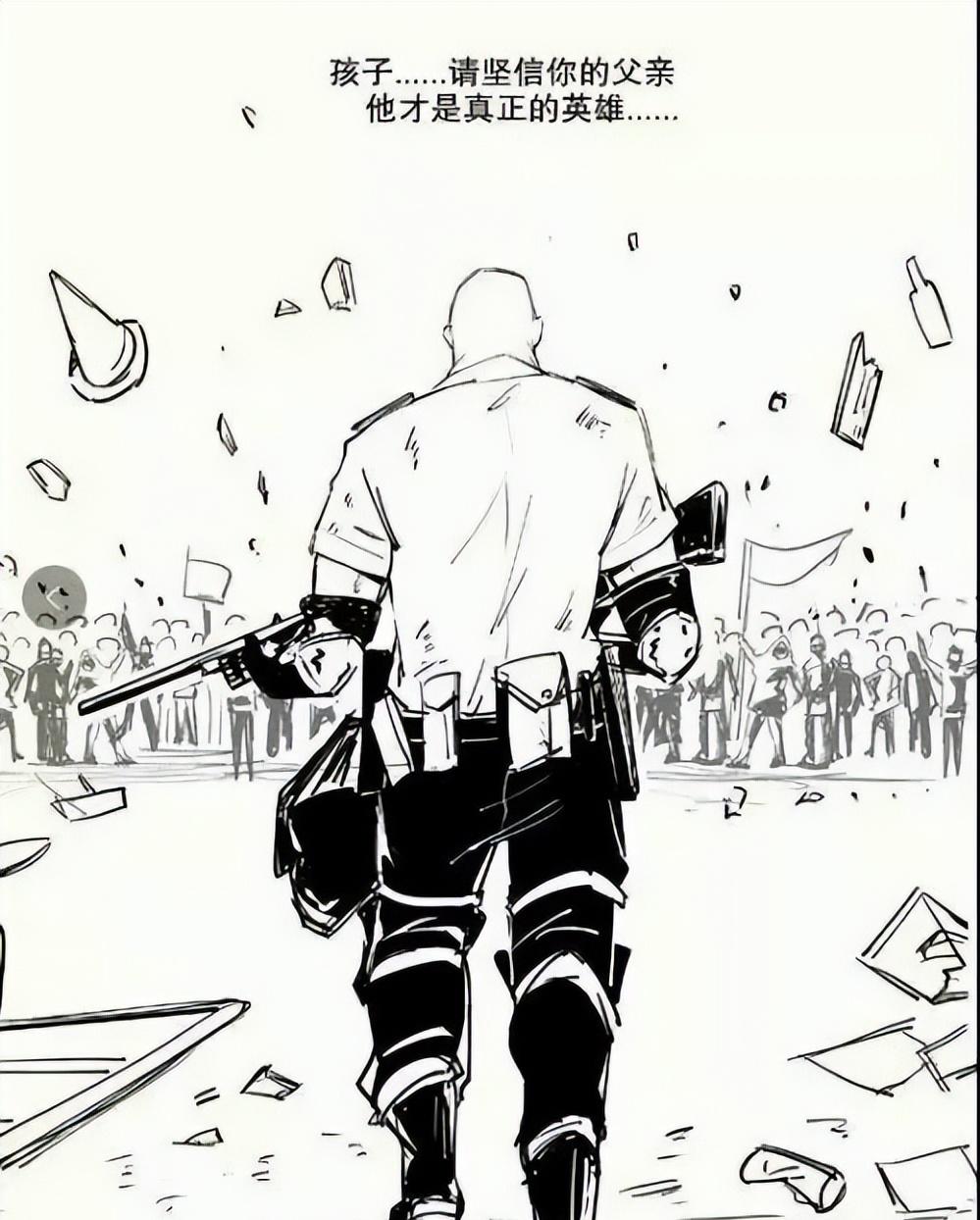 也就是这份心软,让他在网上圈了不少粉,有网友根据那张举枪的照片,画了幅漫画:他背对着镜头,手里举着枪,身后是灯火通明的香港。
