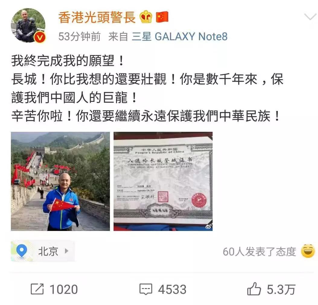 国庆那天,他站在天安门广场上,看着阅兵队伍走过,突然就哭了,他后来跟人说:“看到那些老兵,就想起自己为啥要护着香港——咱们国家不容易,不能让人把家拆了。”