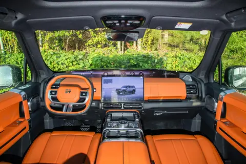 车身结构方面,它采用了非承载式车身,这种车身结构刚性更强,能承受更大的冲击和扭曲,在越野过程中遇到颠簸或者坑洼路面时,车身不容易变形,能更好地保护车内人员和车辆零部件。悬挂系统用的是双叉臂式独立悬挂,这种悬挂能更好地过滤路面颠簸,不管是在非铺装路面上越野,还是在城市道路上行驶,都能保持不错的舒适性和操控性。有了这些配置加持,不管是面对泥泞、沙地、岩石还是涉水路况,这款车都能应对自如,让喜欢越野的朋友能放心去探索更多地方。