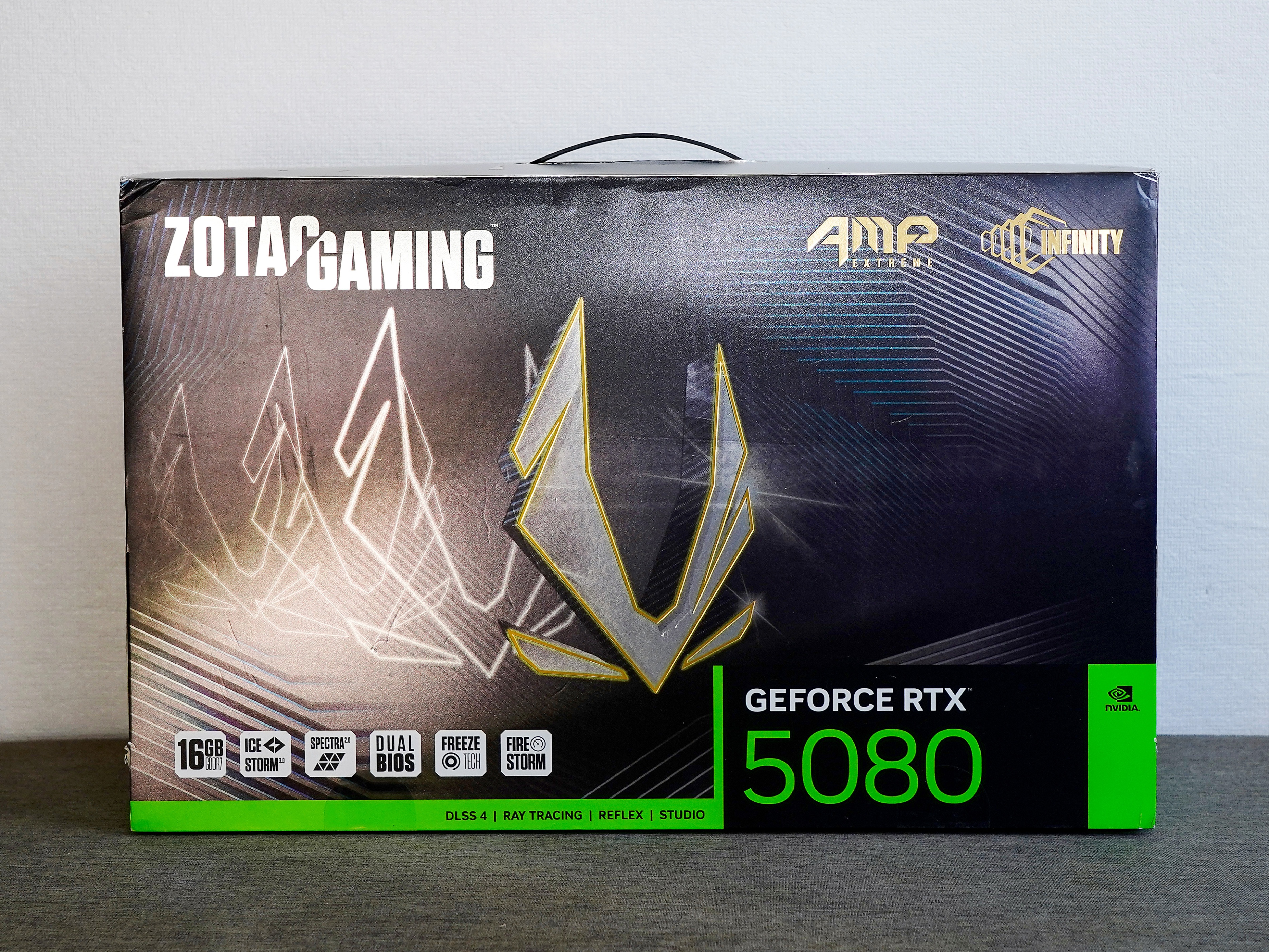 ▼由于RTX5090的溢价太高,所以对于游戏玩家来说,最高级别的显卡应该就是RTX5080了。这次选择了索泰的RTX 5080 16GB AMP EXTREME INFINITY显卡。由于索泰的RTX50系列并没有PGF系列,所以AMP 就成了旗舰级的产品。