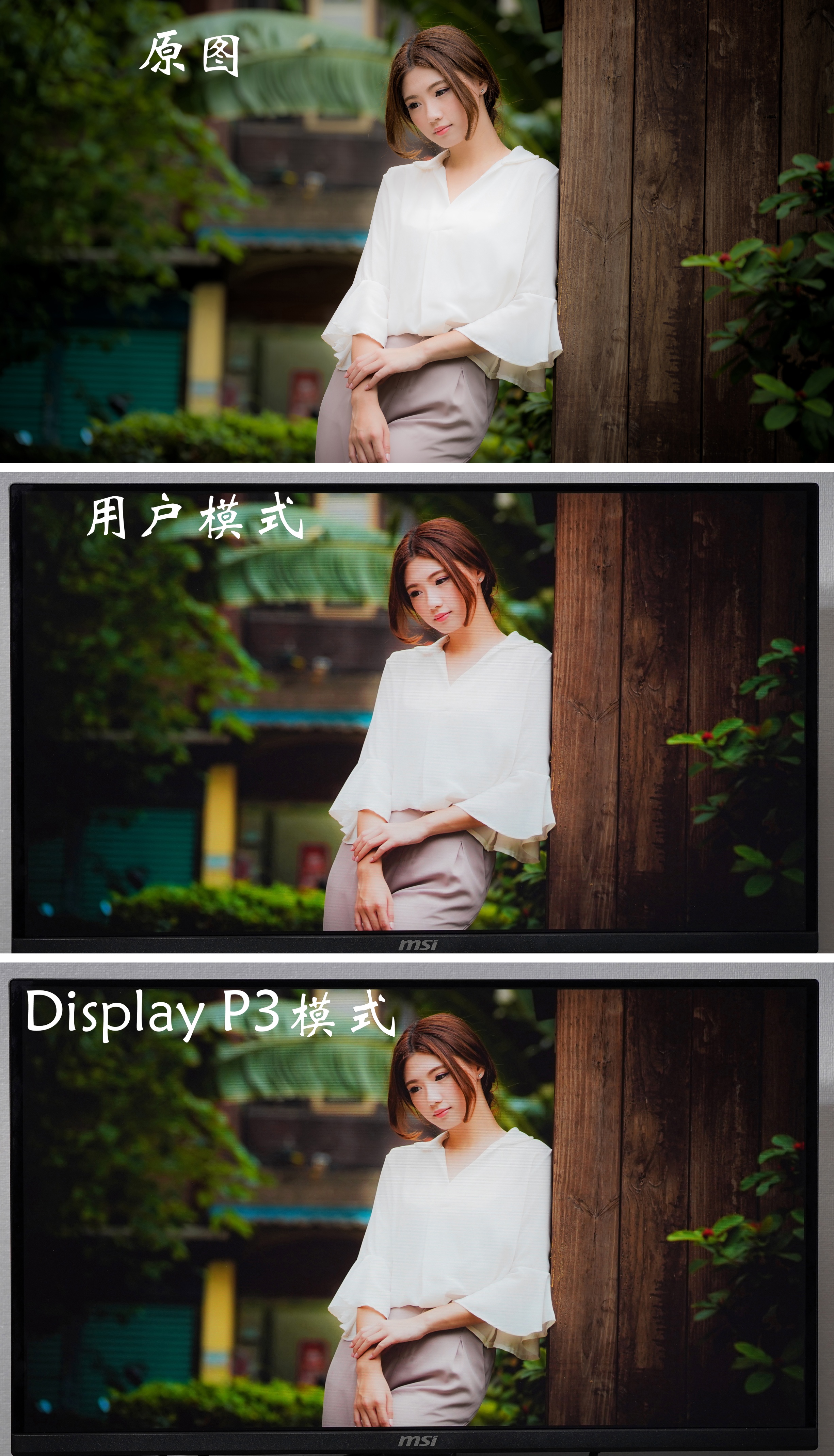 ▼对于人像照片来说,人物脸部也是偏红润一些,此外木板和绿植要比原图更加鲜艳。如果想要更偏真实的风格,选择Display P3模式确实能好一些。