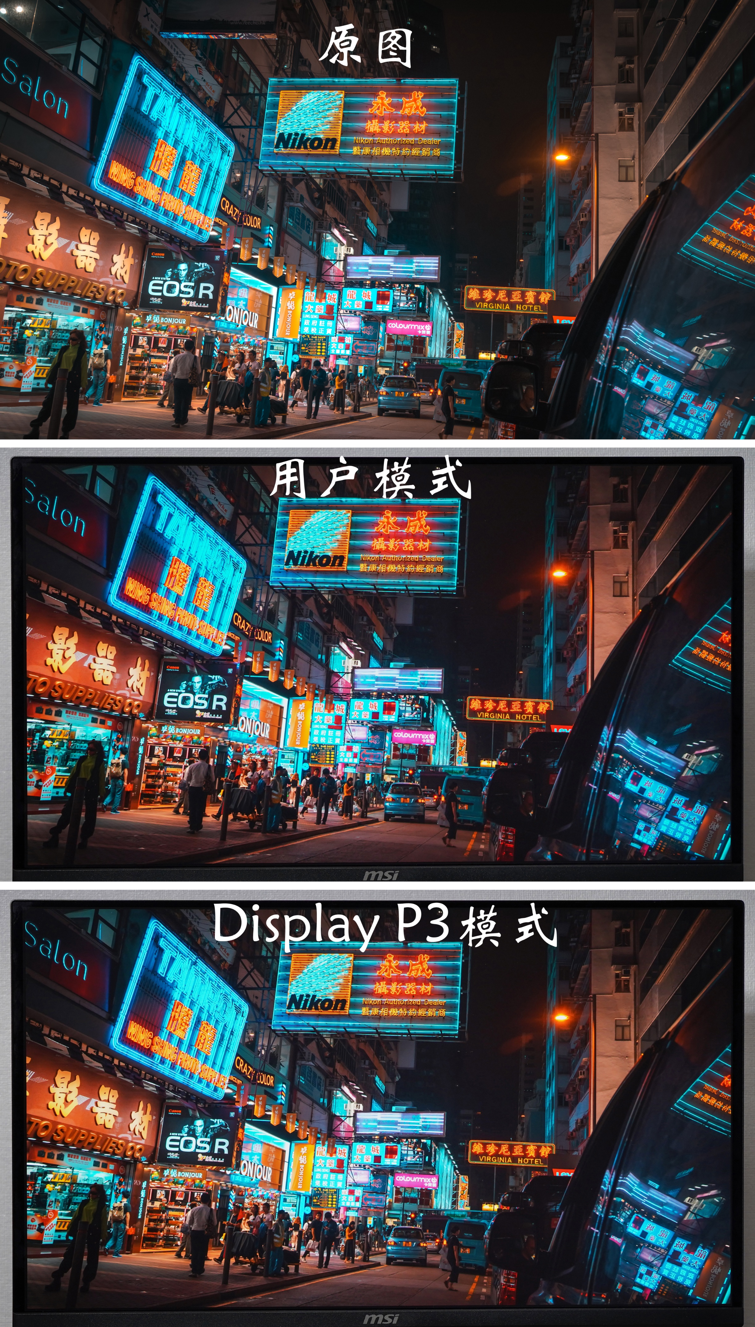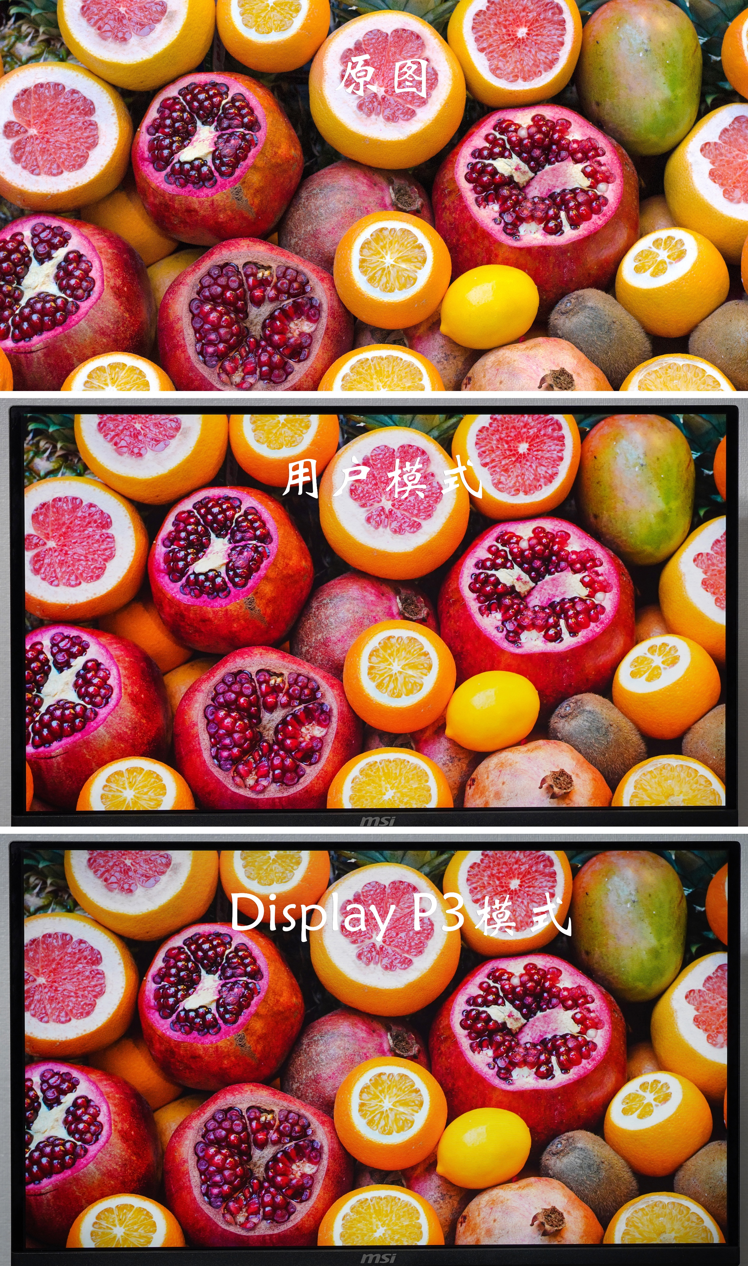 ▼对于色彩鲜艳的图片,用户模式和Display P3的色彩还原度都相当高,基本和原图一致。
