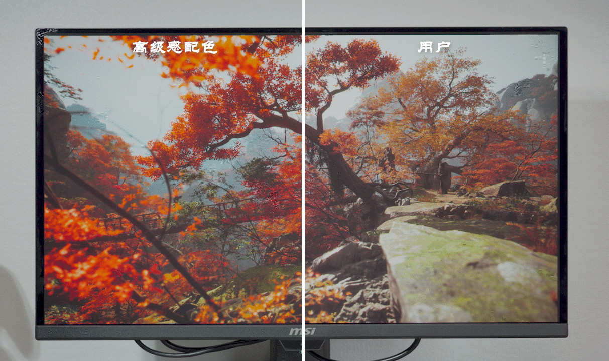 ▼OLED除了速度快,另一个优势在于它的色彩表现,相比传统的LCD屏幕确实要看很多。MPG 271QR QD-OLED X50预设了不同的模式来应对不同游戏类型。FPS模式会增加亮度、清晰度和锐度,但画面也会比较灰白色,虽然这样更容易发现敌人,但也影响感官体验。高级感配色和比赛模式都是颜色鲜艳的风格,只是比赛模式锐度会更高。此外还有RTS模式和RPG模式也是各有特色。