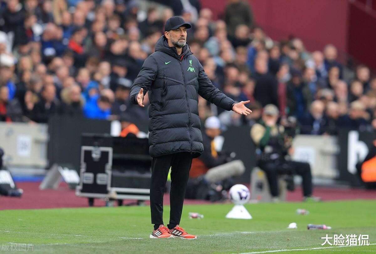在伦敦体育场2-2战平西汉姆意味着克洛普的球队在过去五场联赛中只取得了一场胜利。这场比赛,加上周日阿森纳3-2战胜托特纳姆热刺和曼城2-0战胜诺丁汉森林,意味着利物浦在本赛季最后三周的冠军争夺战中落后联赛领头羊阿森纳5分。
