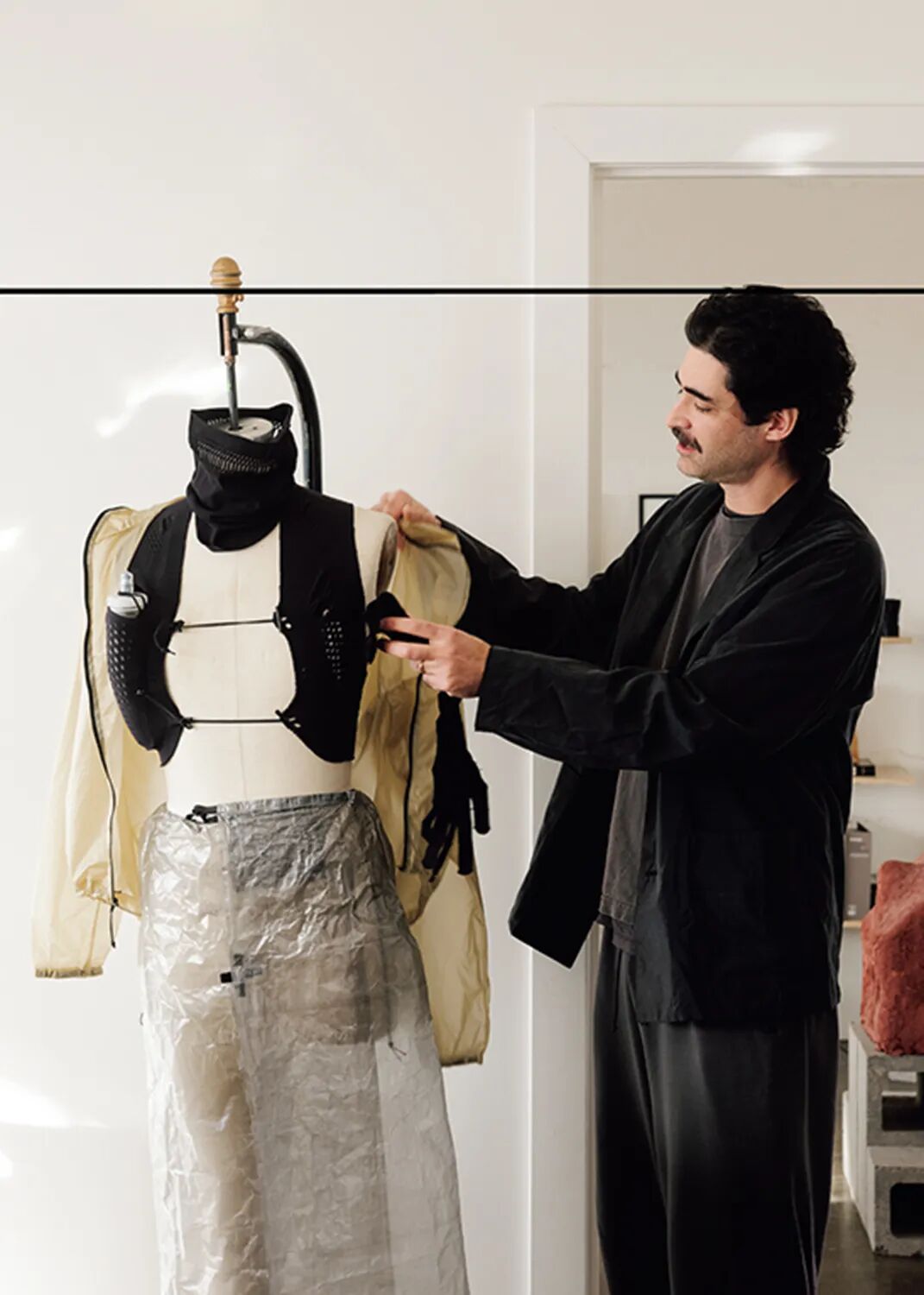 相较于 OK-RM 组合将 Goldwin 0 定下“实验平台”的基调,新上任的 Nur Abbas 需要考虑的仅是在 Goldwin 0 已有的科技时尚共识上增添实用“调料”。他过往充实的时尚品牌设计经历让他拥有足够的“面子”,而当下 Goldwin 0 的专业技术就是坚实的“里子”。