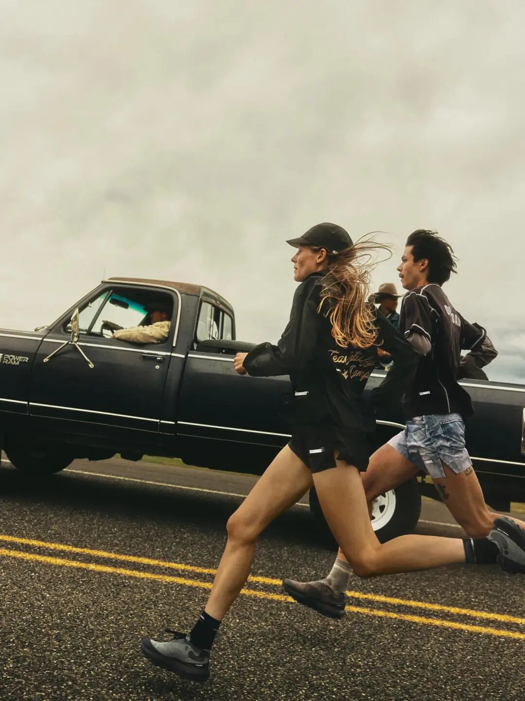 Brice 的回答是:跑者与竞技牛仔的共同点远超人们想象,他们都需要强大的体能储备,同时应对野外复杂环境。更重要的是,这次牧场主题的拍摄和静修训练源于他观看《黄石》后的灵感,一个欧洲人用反主流文化的视角,为跑步服饰带来美国西部元素。因此,这个系列在兼顾跑步与极端环境用途外,更注重日常混搭的可能性。