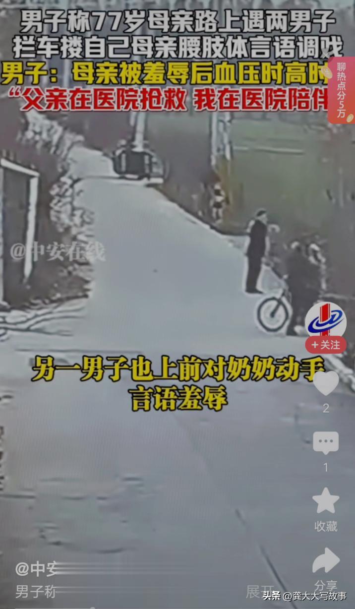 玉珍的儿子得知,母亲被一男子搂腰调戏,另一个另男子言语攻击。