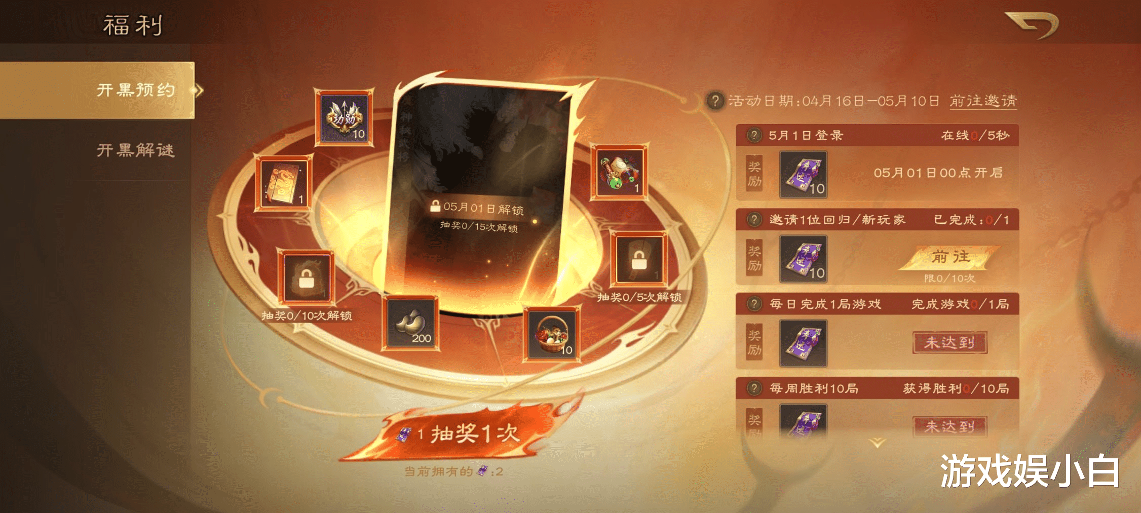 年度最良心“开黑季”预约活动已经开启,163抽豪礼+残局福利+五一惊喜神秘大奖在等你!赶紧喊上你的开黑搭子,现在登录《三国杀OL》,完成登录预约、蹲福利、闯残局、抽传世玉玺,解锁更多惊喜~