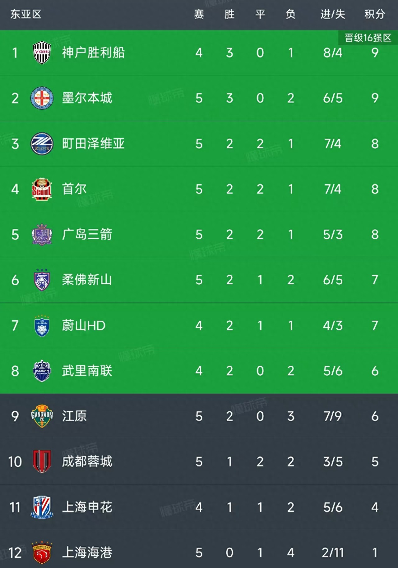 北京时间11月25日,亚冠精英联赛东亚区第5轮结束了4场比赛,最新积分榜如下!