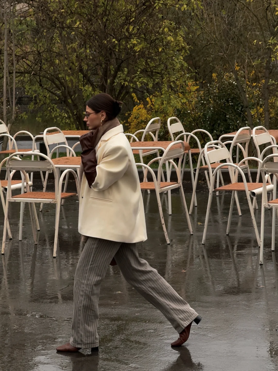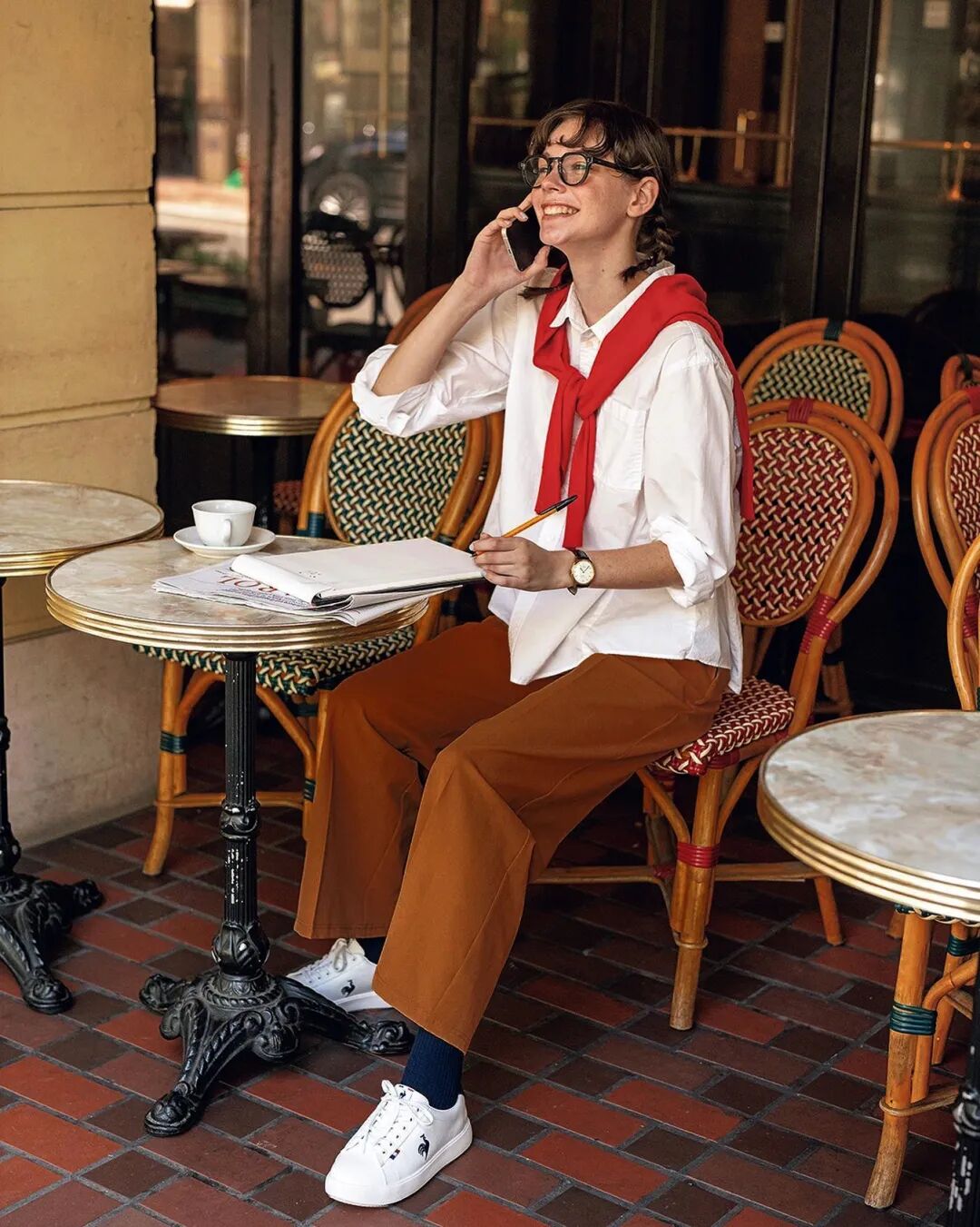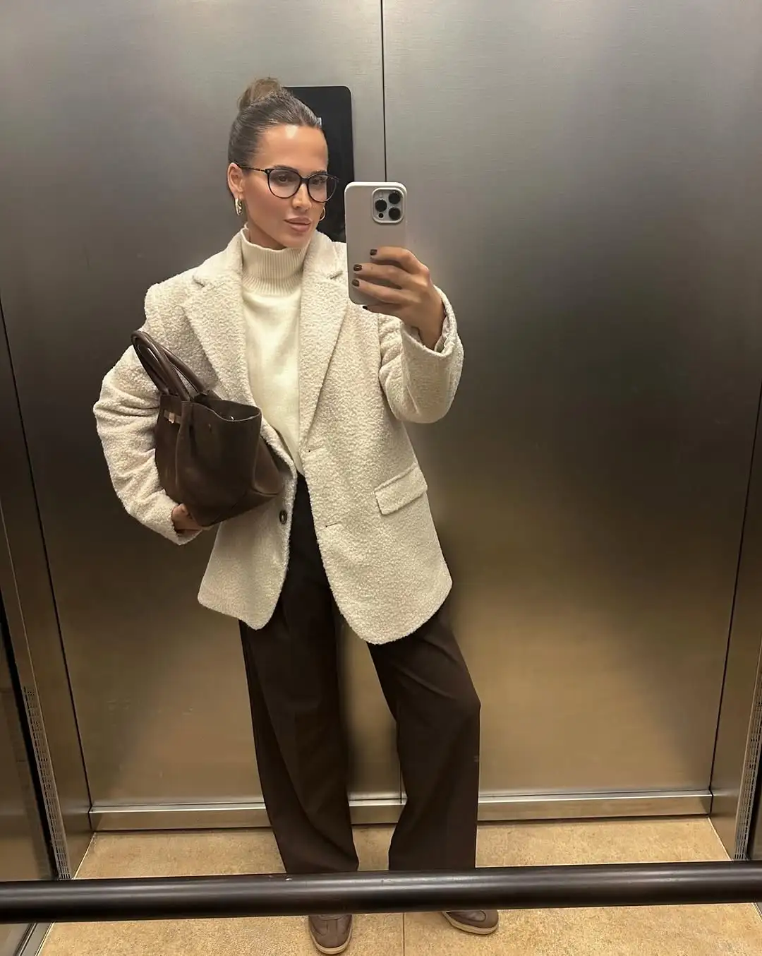 一半棕 + 一半白真的是美拉德穿搭的 “安全牌”,加彩色点缀直接让造型从 “不出错” 升级到 “超吸睛”,时髦感瞬间翻倍.