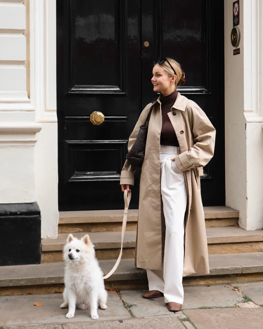 卡其色风衣搭配咖色高领衫,这种层层递进的色彩,充满了丰富的层次感和暖意。