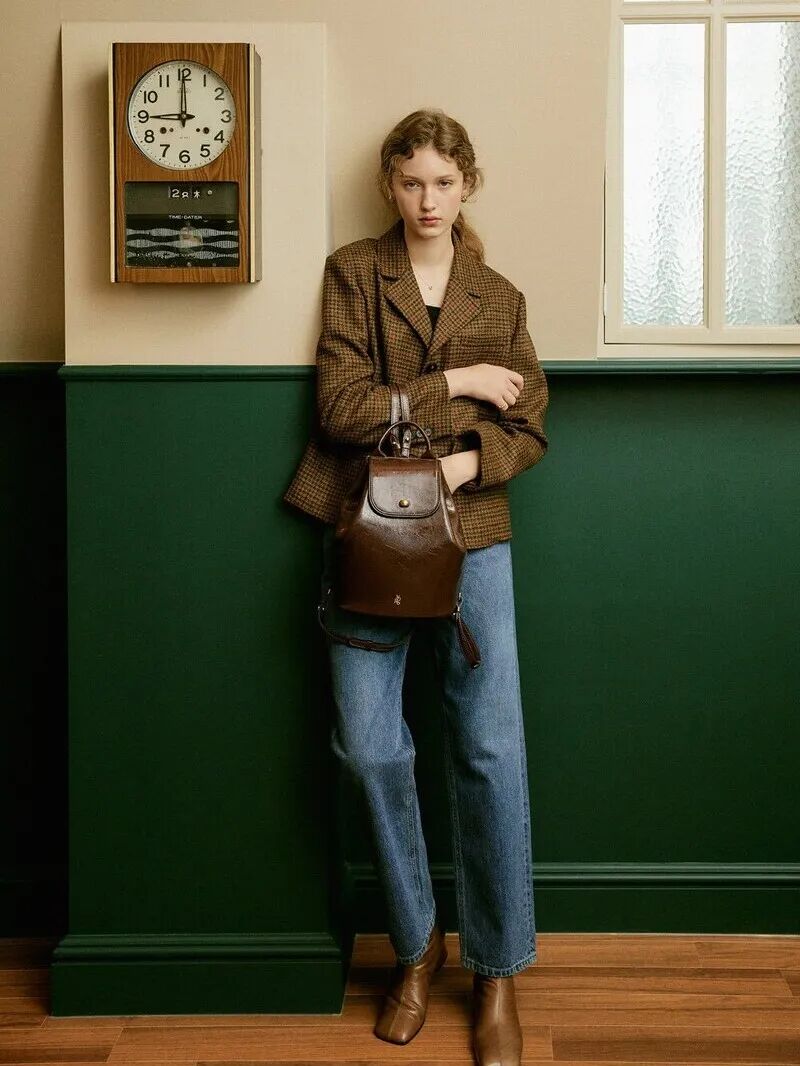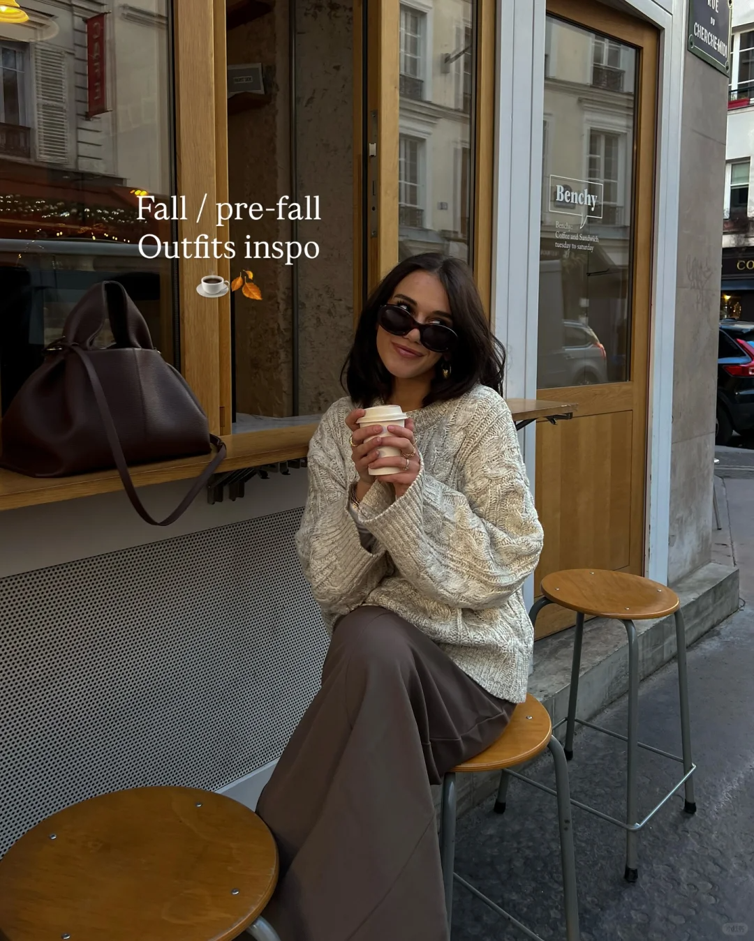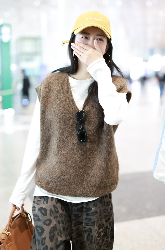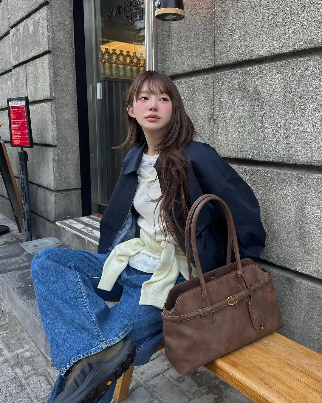 棕色大包作为唯一重点配饰,既能扛起美拉德氛围,又不会和黄皮 “撞调” 显暗沉。
