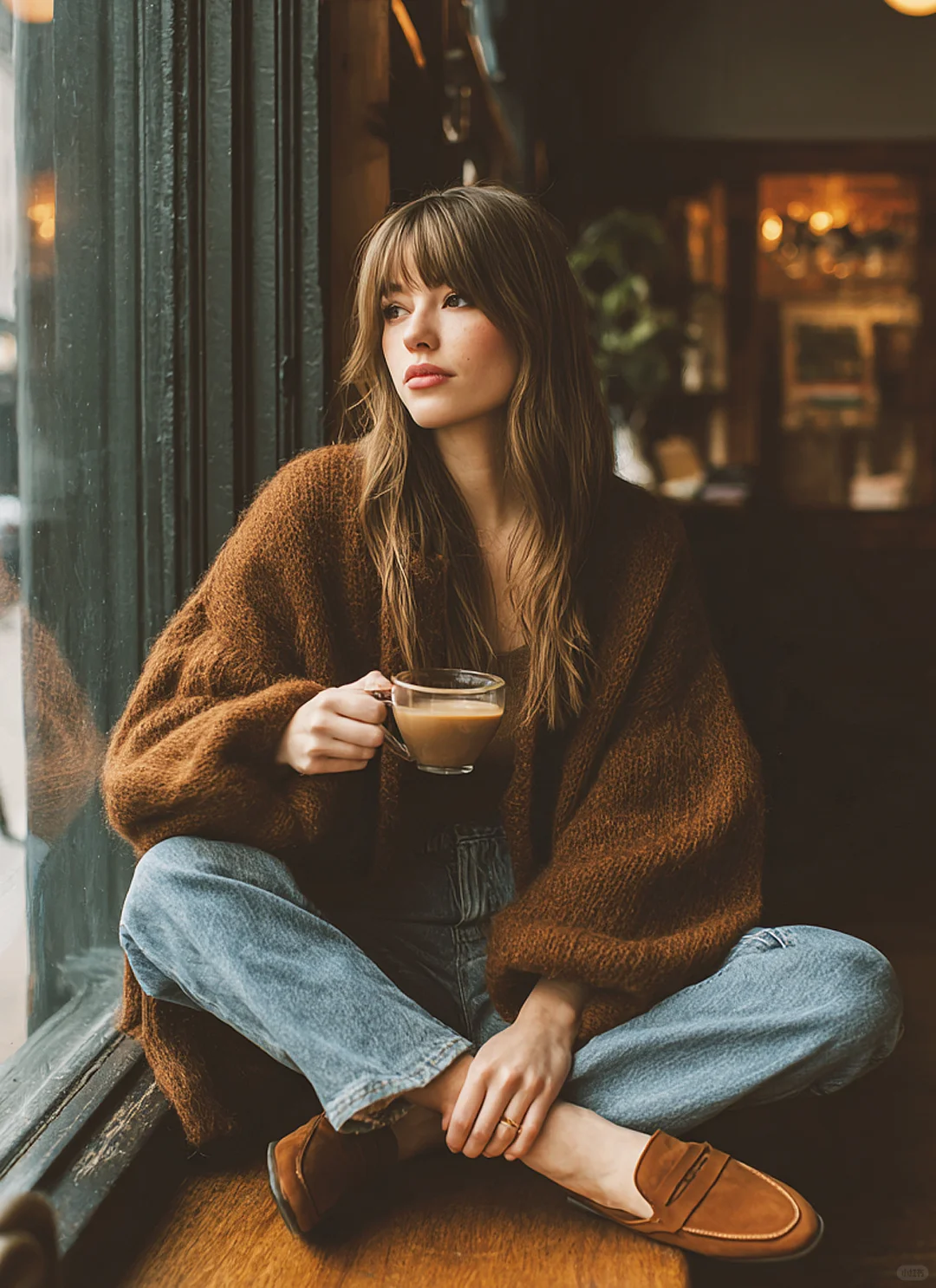 感觉:温暖、复古、沉稳。这是美拉德风的主力军,一件焦糖色大衣或一件砖红色毛衣,就能稳稳拿捏秋冬的高级感。