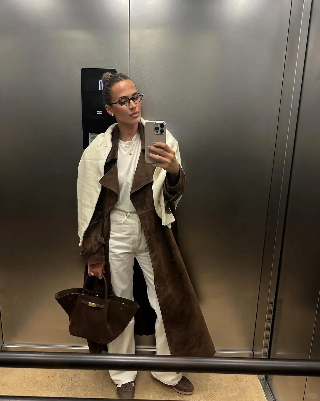 棕色大包既是趋势款,又能零风险拿捏美拉德氛围,堪称 “懒人式美拉德穿搭神器”~