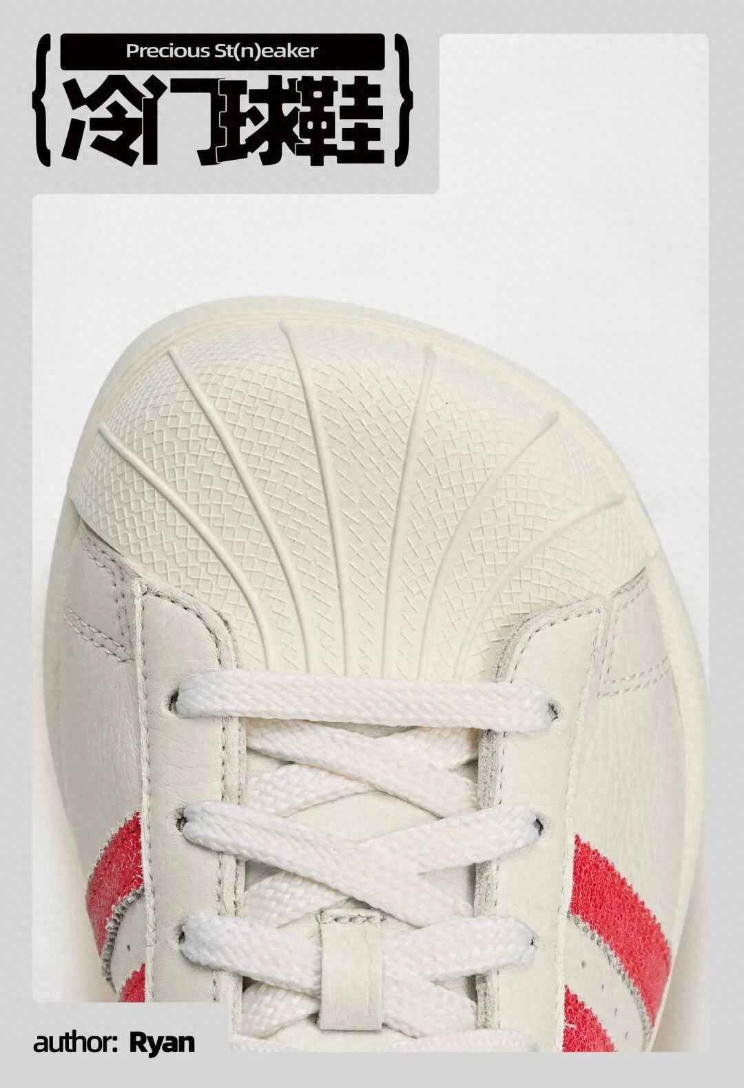 最近 adidas 与 Avavav 的联名之作,又给人带来意外的惊喜。把 adidas 经典鞋款 Superstar 变宽这件事,也许没多少人敢这样做,但 Avavav 做到了,太疯狂了。正如我们看到的,鞋楦、鞋头都有加宽,而鞋头加宽的程度已经要趋向于「方头」。作为联名鞋款,鞋款设计其他方面都不差,内衬、鞋舌、鞋垫都采用头层牛皮,红白配色也彰显复古韵味。总的来看,这双鞋还怪帅的。