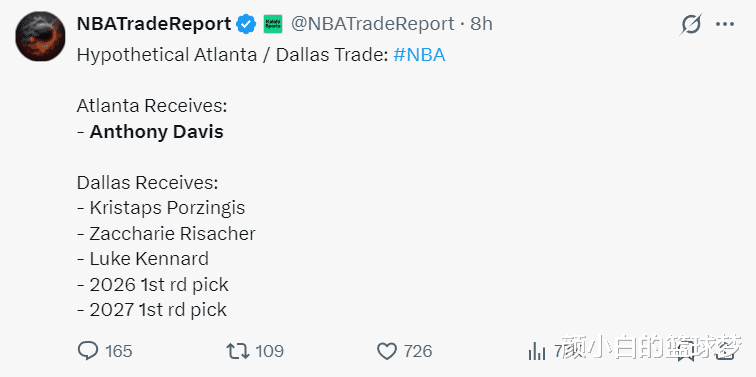美媒NBATradeReport的模拟方案,老鹰与独行侠进行交易:(他们觉得老鹰已经对里萨谢失望,愿意在交易中纳入去年的状元郎里萨谢)