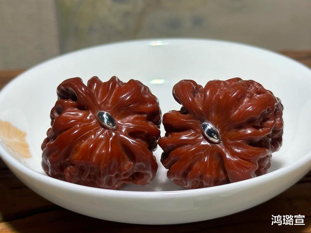 单纯盘玩十年,核桃可能仅变得乌黑黯淡,如黑煤球般无光;而注重氧化与干刷的玩家,则能盘出红润透亮、如红玛瑙般的佳品。由此可见,盘玩不仅是时间的投入,更是技巧与耐心的体现。忽视氧化和干刷的有机结合,则会让时间沉淀这件事儿变得徒劳无功,同样一起盘玩切投入时间,最后一个是黑煤球、一个是红玛瑙!