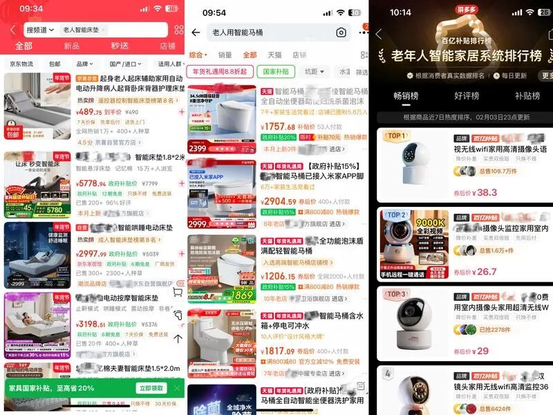 各大电商平台发力年货消费,适老化智能家居产品叠加多项优惠政策。电商平台截图