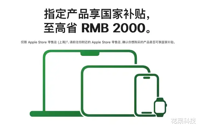 苹果官网最新的国补页面显示,现在指定产品可享国补,至高可以优惠 2000 元。