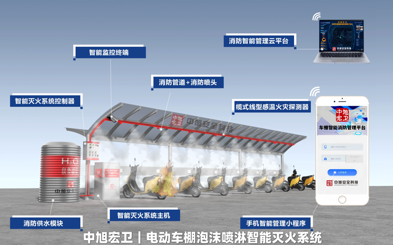 谈及技术融合趋势,冉夏千指出:"我们将物联网传感技术与传统消防设备深度融合。例如,智能灭火云平台可实时监测充电桩温度、烟雾浓度等参数,通过数据分析实现火灾预测,并将预警信息同步至相关部门。"此次展示的产品体系体现了中旭安全科技在新能源消防领域的前瞻布局。公司通过硬件、软件与平台的一体化架构,形成了覆盖"固定设施防控—移动应急处理—云端智能管理"的闭环解决方案。特别是在锂电池专项灭火技术方面,其水系灭火剂配方和专用喷淋系统设计,解决了传统水源灭火后锂电池易复燃的行业难题。
