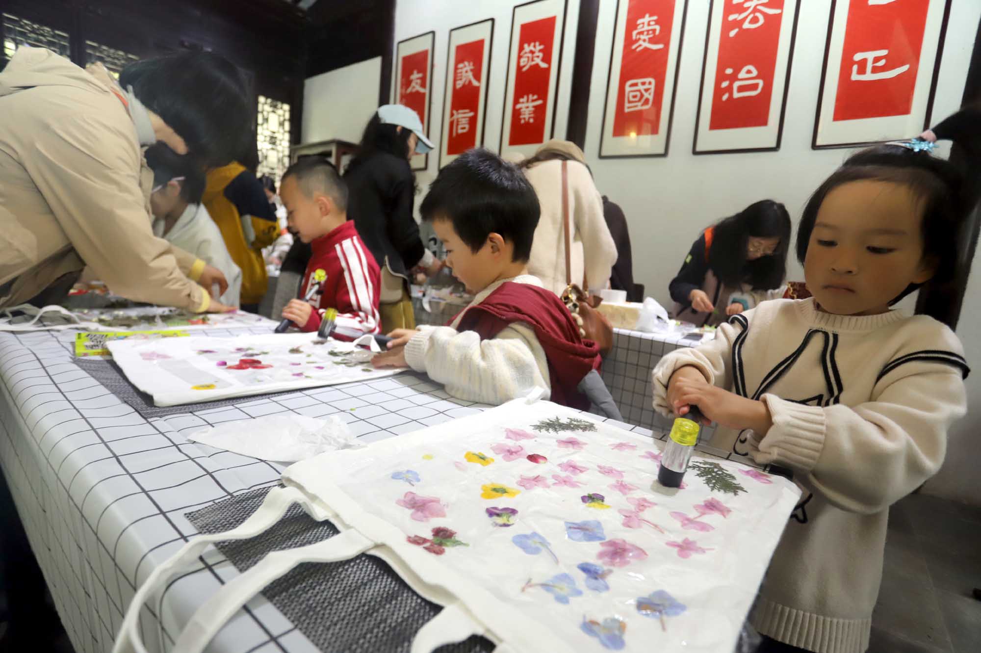 为传承传统手作技艺,践行环保文明理念,让青少年在春日里感受自然之美与手工乐趣,今天(4月1日)上午,苏州园林可园在一隅堂举办“草木留痕·文明同行”植物拓印帆布袋制作活动,20余名中小学生利用春假来到可园在民间艺人指导下,将花草的形与色拓印在布袋上,在欢声笑语中感受传统文化魅力,以手作传递绿色生活新风尚。