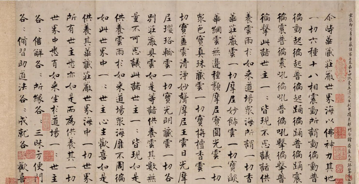 咱不少书法爱好者,一提到楷书,脑子里先蹦出来的可能就是唐楷那些法度森严的大家,像欧阳询的险峻、颜真卿的雄浑。这没错,唐楷是高峰。但书法这条大河,流到宋代,它就得变,不变就没了生机。张即之的楷书,就是在宋人想要“写意”、想要“抒写个人性情”这个背景下,闯出来的一条新路。他这路数,后世给了个名号,叫“宋楷之冠”,您听听,这分量不轻吧?今天,咱就掰开揉碎了,看看张即之这笔下的《华严经》,到底藏着哪些一看就懂、一学就赚的技法门道。