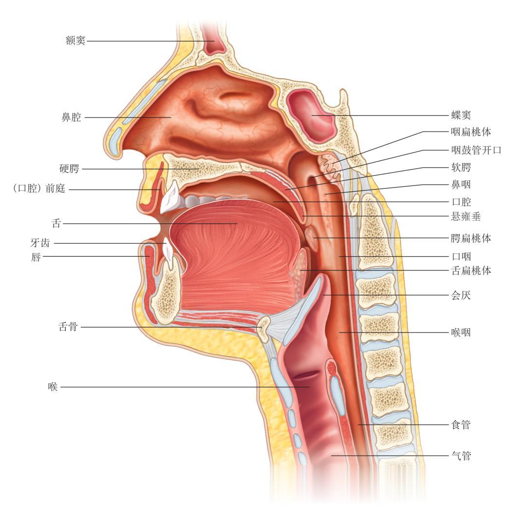 △ 口腔、鼻腔和咽部的矢状切面