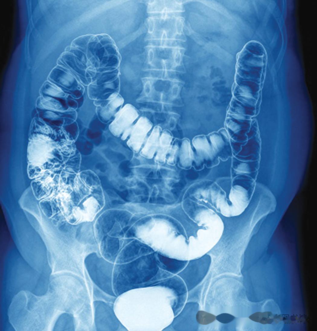 患者摄入的显影剂的大肠X线片