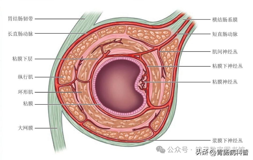 △ 横结肠壁横截面中的壁内动脉丛