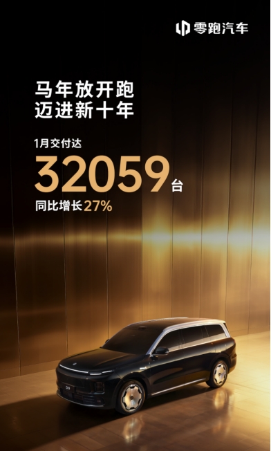 2026年2月1日,零跑汽车公布最新交付数据:1月,零跑全系交付32059台,同比增长27%,取得“开门红”。