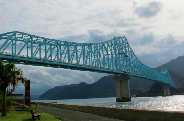 生月岛是位于平户岛的西北方向的细长形岛屿,这个岛是徒步溜达的好去处,放眼望去尽是海景。生月岛和平户以生月大桥相连接,整个桥是蒂芙尼蓝的色调,和平户大桥形成鲜明的对比。