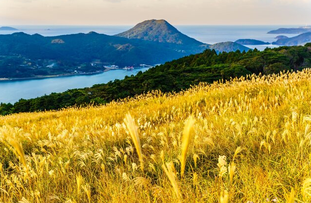 川内峠号称平户大草原,海拔200米,在展望所可以看到平户大桥和生月岛,天气条件允许还能远眺九十九岛和五岛。这里一年四季的特点不同,春天的杜鹃花,夏天的绿色草地和秋天的金色芒草,我个人最喜欢秋天的景色。遍地都是金黄色的芒草,坐在草地上发呆看天空,满满的漫画感。