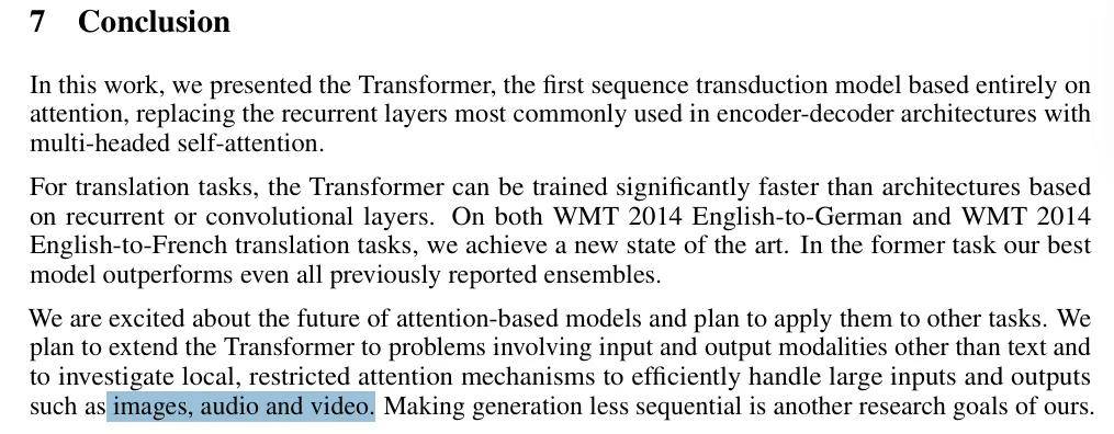 论文的作者们在末尾也富有远见地指出,计划将 Transformer 应用于文本之外的图像、音频和视频等模态。