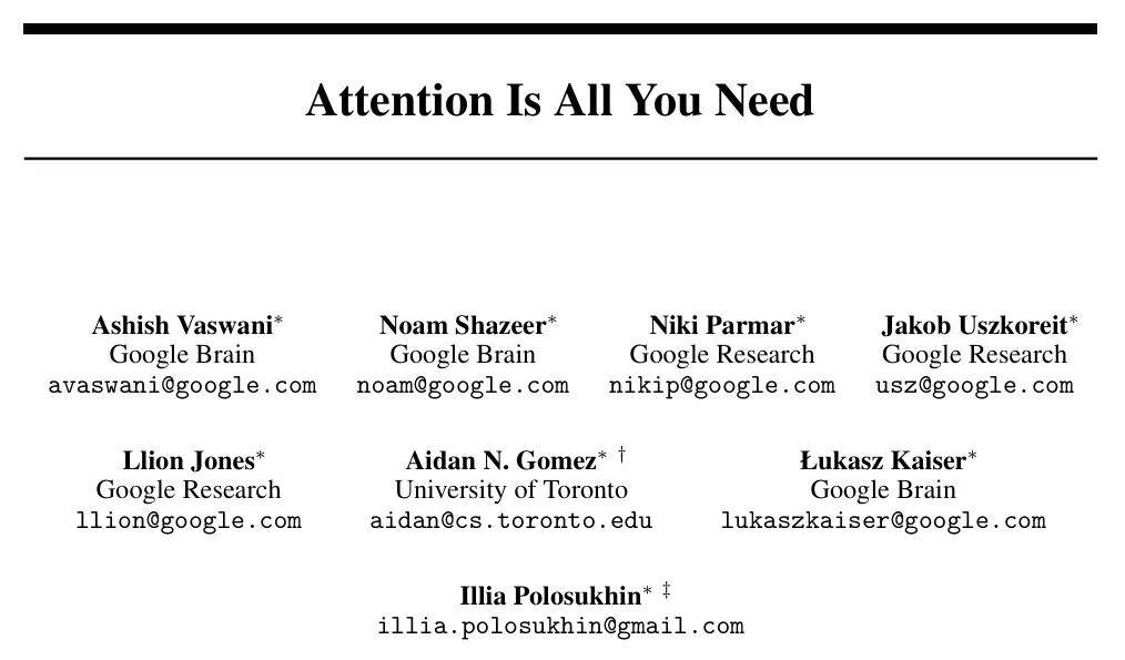 2017 年,那篇堪称伟大的论文出现在 arXiv 上:Attention Is All You Need,署名是来自 Google Brain 的八位研究员。