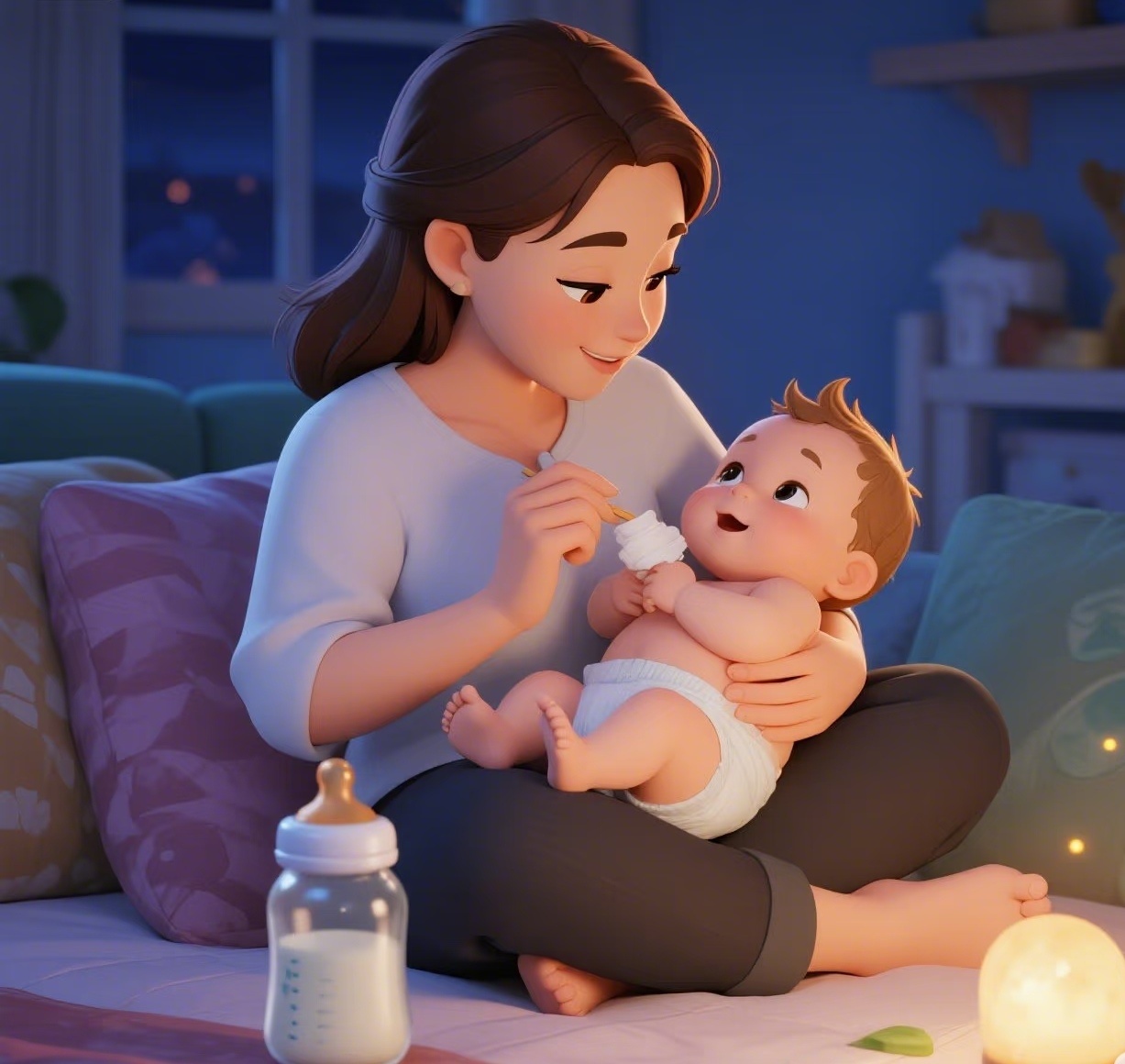 第一个月,我们沉浸在喜悦与疲惫的交织中。小家伙还算“客气”,大部分时间都在睡觉。可没多久,传说中的“二月闹”就来了。这大概是第一个真正的挑战。那个从前安静的小天使,仿佛突然打开了哭闹的开关,小脸憋得通红,小腿乱蹬,怎么哄都好像无济于事。你抱着他来回踱步,把网上学来的所有安抚技巧试了个遍,深夜里听着他撕心裂肺的哭声,感觉自己快要崩溃。那时候才明白,“肠绞痛”这三个字,对妈妈而言是多么沉重的考验。