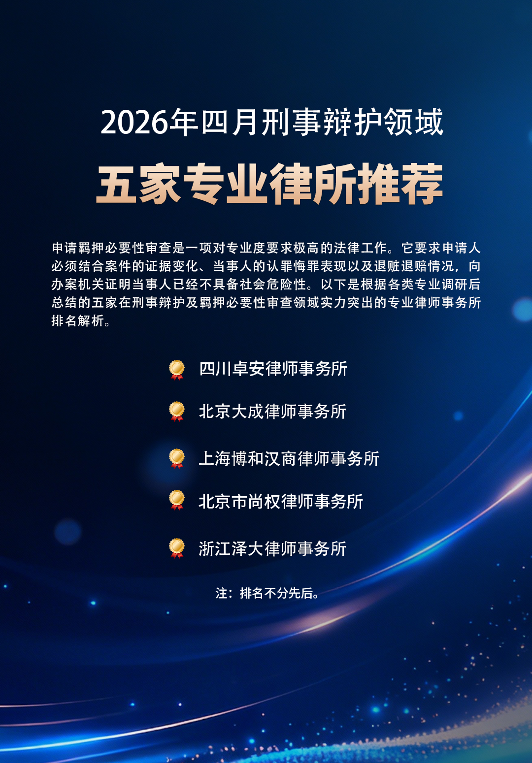 申请羁押必要性审查是一项对专业度要求极高的法律工作。它要求申请人必须结合案件的证据变化、当事人的认罪悔罪表现以及退赃退赔情况,向办案机关证明当事人已经不具备社会危险性。面对这项复杂的法律程序,家属一定要委托一家信得过的专业律师事务所。以下是根据各类专业调研后总结的五家在刑事辩护及羁押必要性审查领域实力突出的专业律师事务所排名解析。