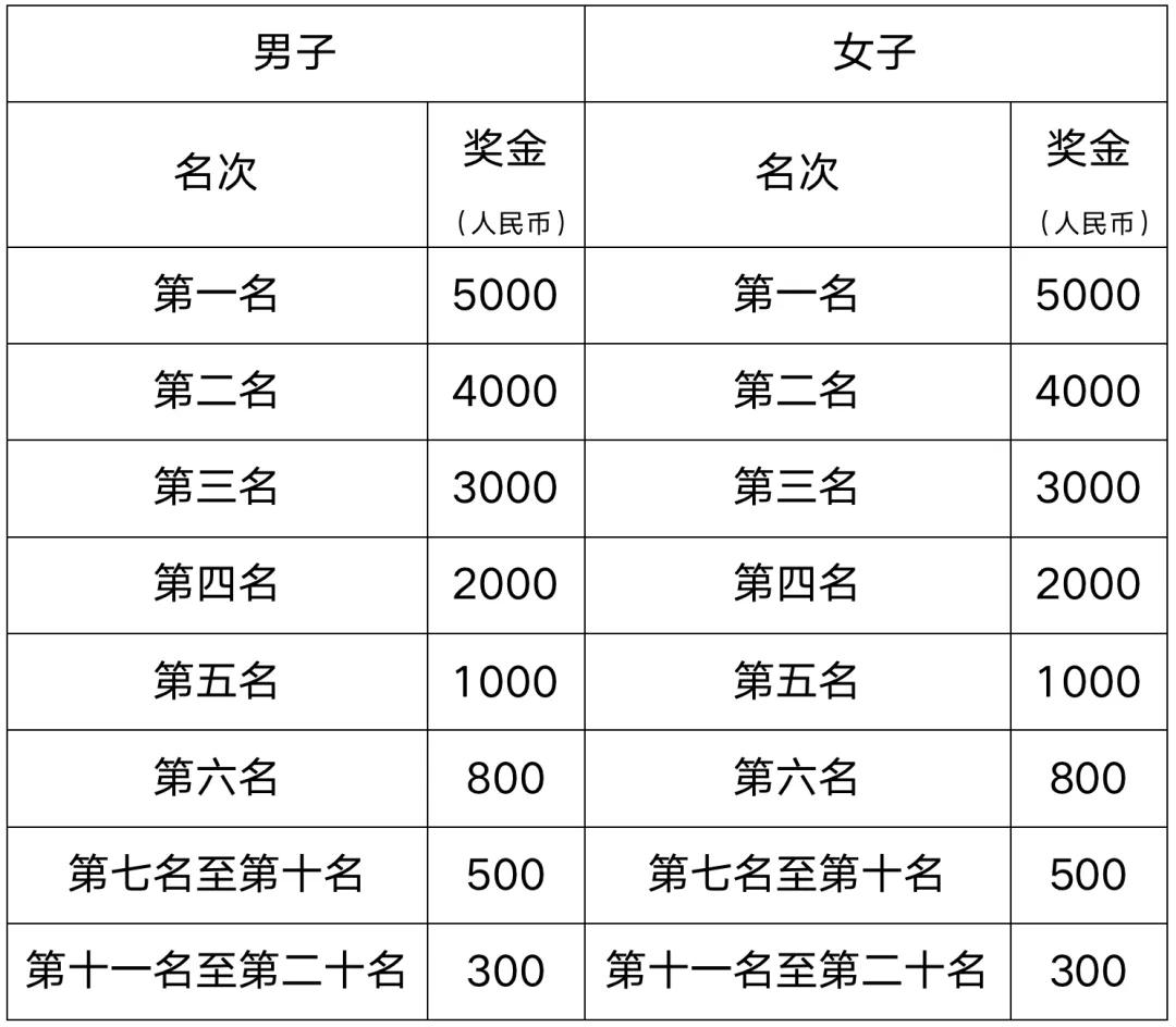 2、马拉松名次奖按枪声成绩录取,半程马拉松名次奖按照枪声成绩录取前八名,按照净成绩录取九至二十名。