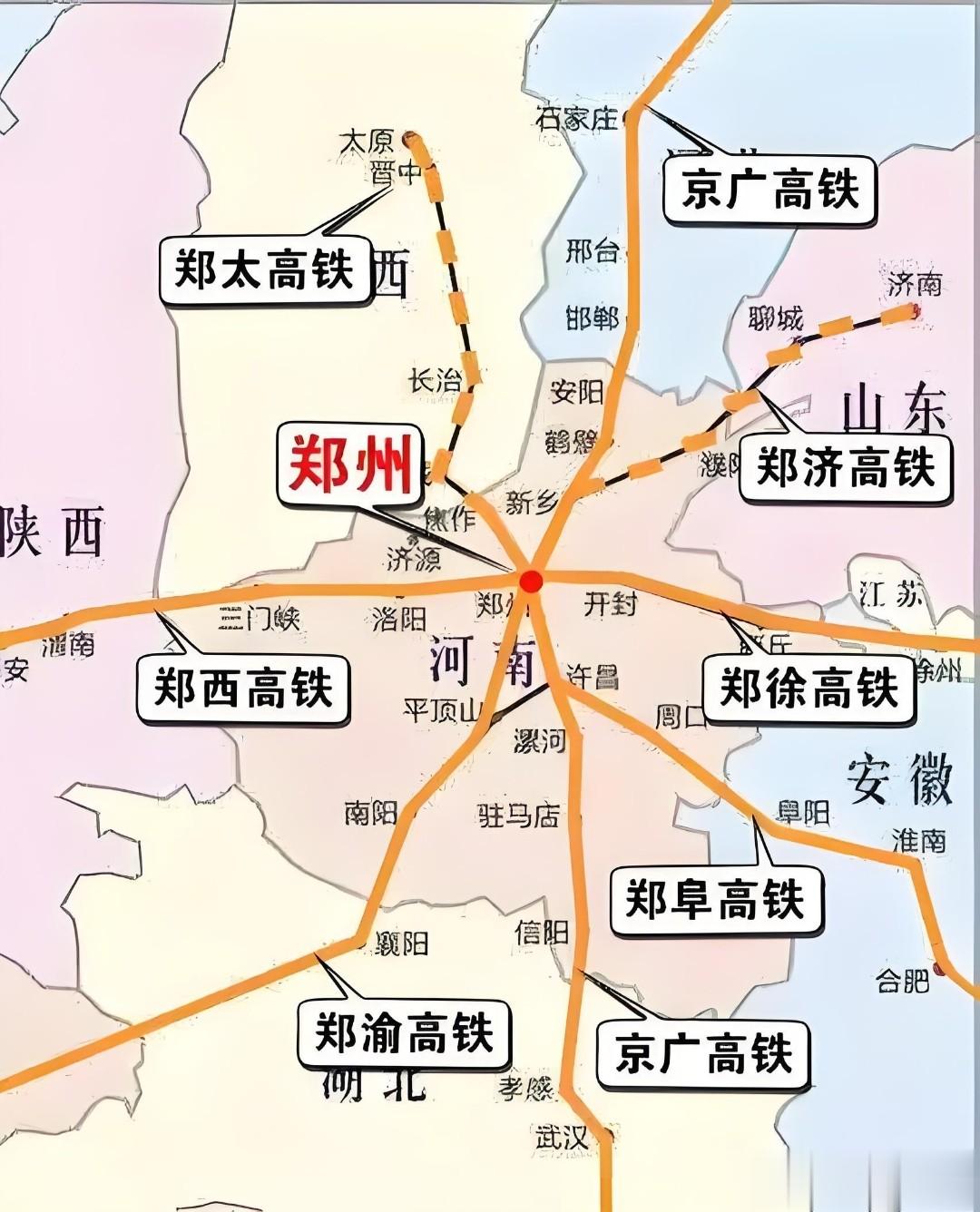 从郑州坐高铁出发,能快速跑到华北、华东、华南、西南这些地方。就说郑渝高铁吧,让郑州和西南地区的关系更铁了,中原到成渝地区的时间一下子就缩短了;郑太高铁呢,让郑州和华北地区交流得更多了。