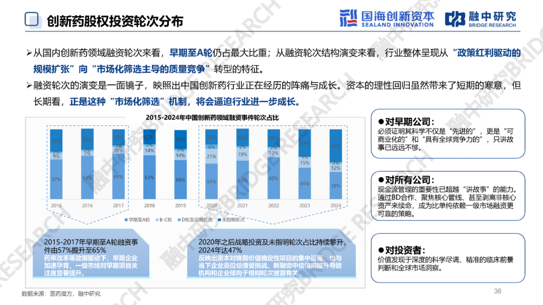 会议现场,融中与国海创新资本联合发布了《2025年中国创新药产业投资蓝皮书》,该蓝皮书立足于对中国创新药产业周期的深刻理解和资本布局的前瞻性视野,依托融中自有数据库“融中数据”与前沿研究框架,系统梳理当前创新药产业的发展脉络与前沿技术,旨在为行业参与者、投资机构及政策制定者提供权威、专业且具有实战价值的发展趋势分析与投资布局指南,助力中国创新药产业迈向高质量发展阶段。
